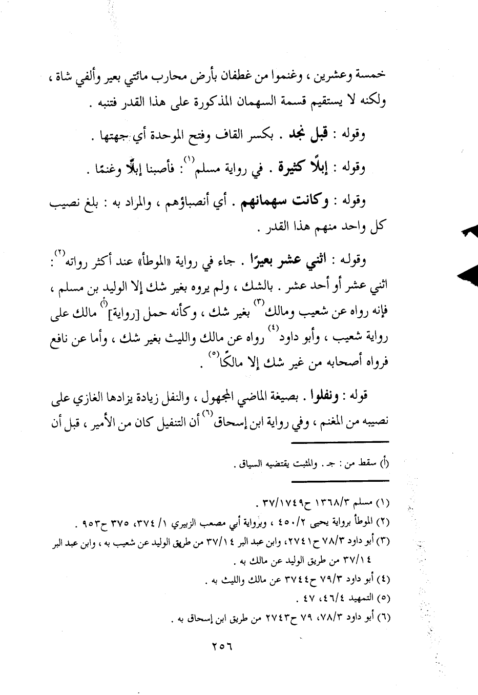 وقوله: اثني عشر بعيرًا. جاء في رواية "الموطأ" عند أكثر رواته (¬2): اثني عشر أو أحد عشر. بالشك، ولم يروه بغير شك إلا الوليد بن مسلم، فإنه رواه عن شعيب ومالك (¬3) بغير شك، وكأنه حمل [رواية] (أ) مالك على رواية شعيب، وأبو داود (¬4) رواه عن مالك والليث بغير شك، وأما عن نافع فرواه أصحابه من غير شك إلا مالكًا (¬5).