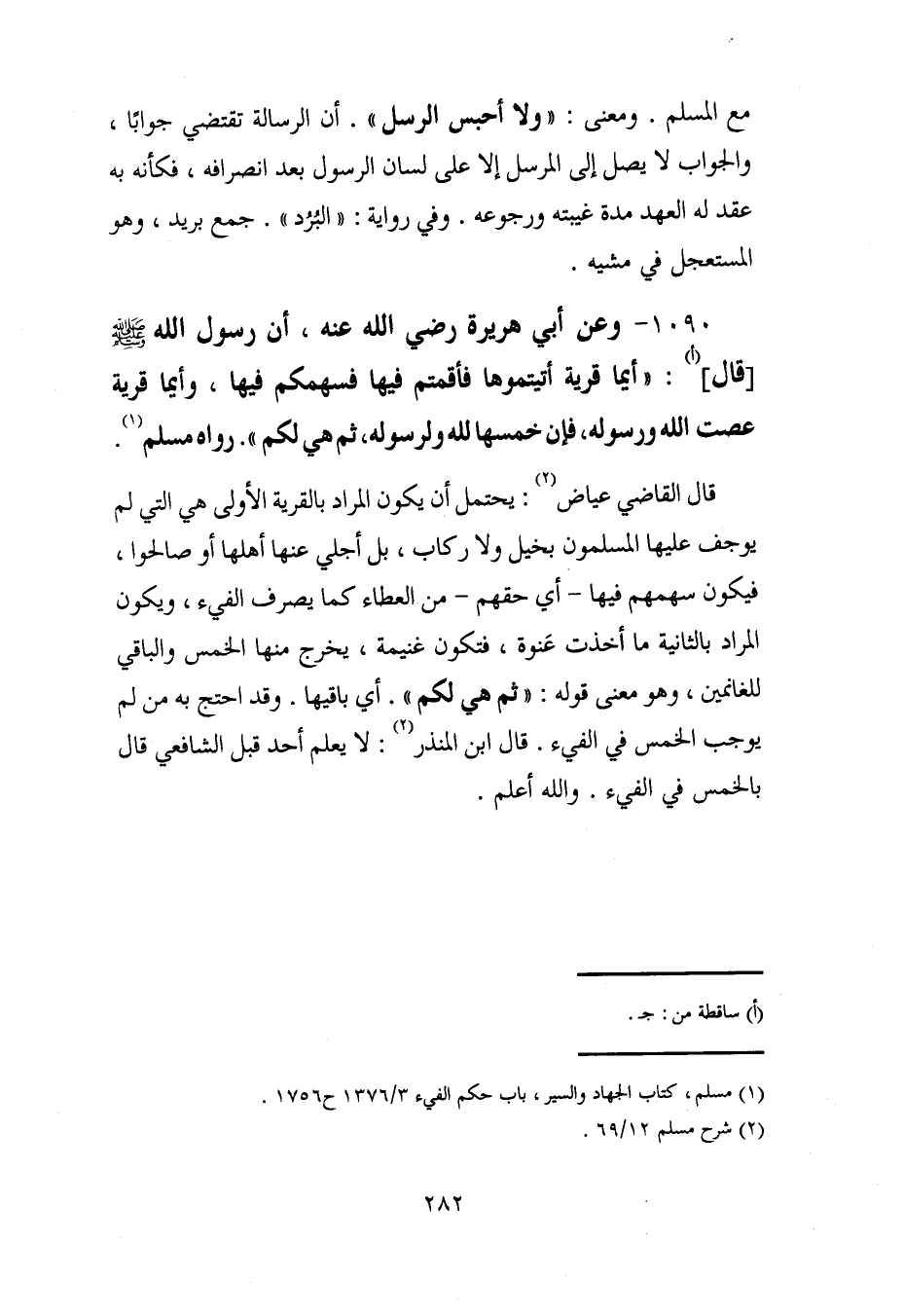 (¬1) مسلم، كتاب الجهاد والسير، باب حكم الفيء 3/ 1376 ح 1756.