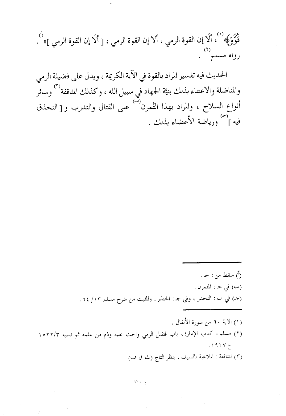 (¬2) مسلم، كتاب الإمارة، باب فضل الرمي والحث عليه وذم من علمه ثم نسيه 3/ 1522 ح 1917.