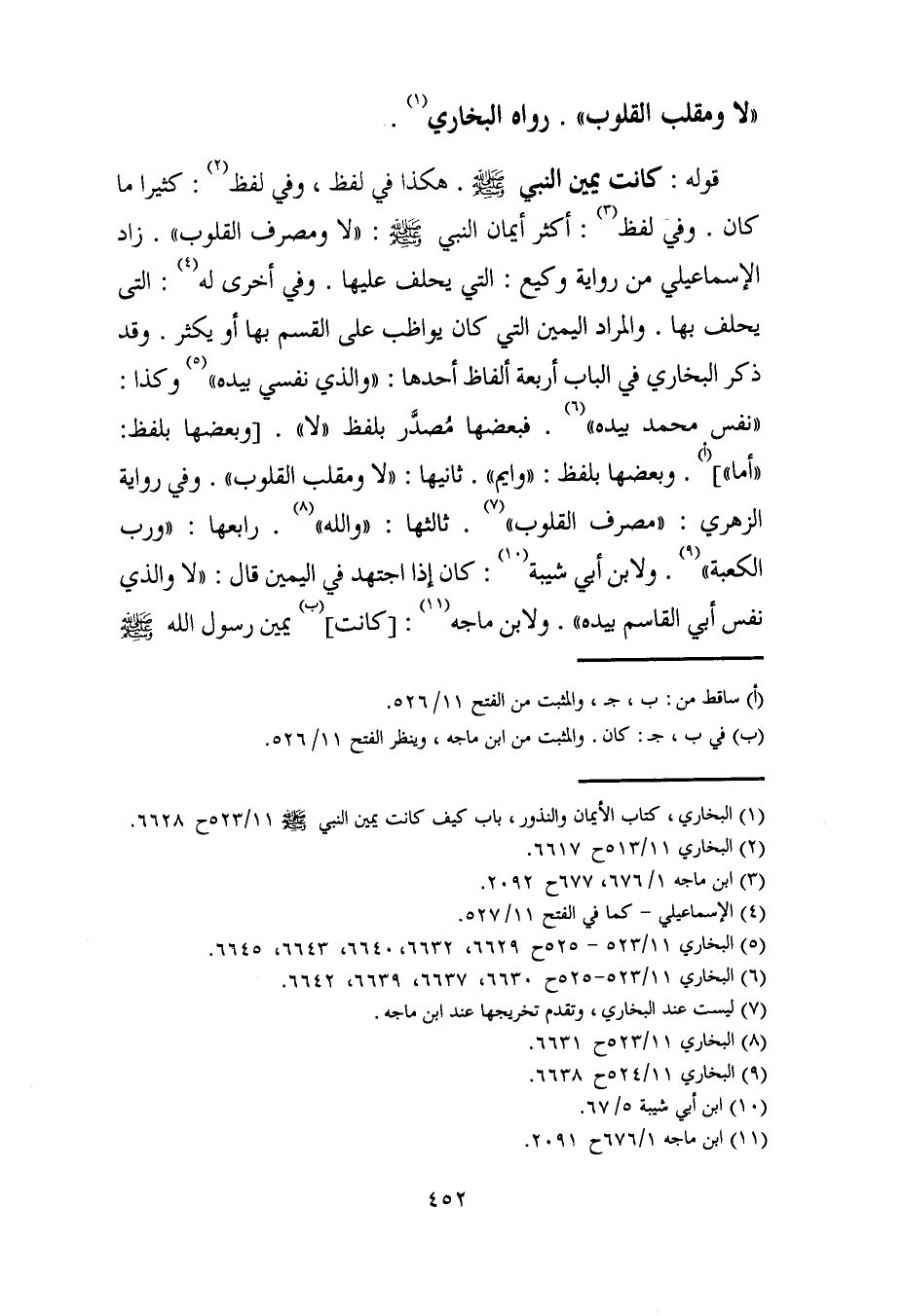 (¬1) البخاري، كتاب الأيمان والنذور، باب كيف كانت يمين النبي - صلى الله عليه وسلم - 11/ 523 ح 6628.