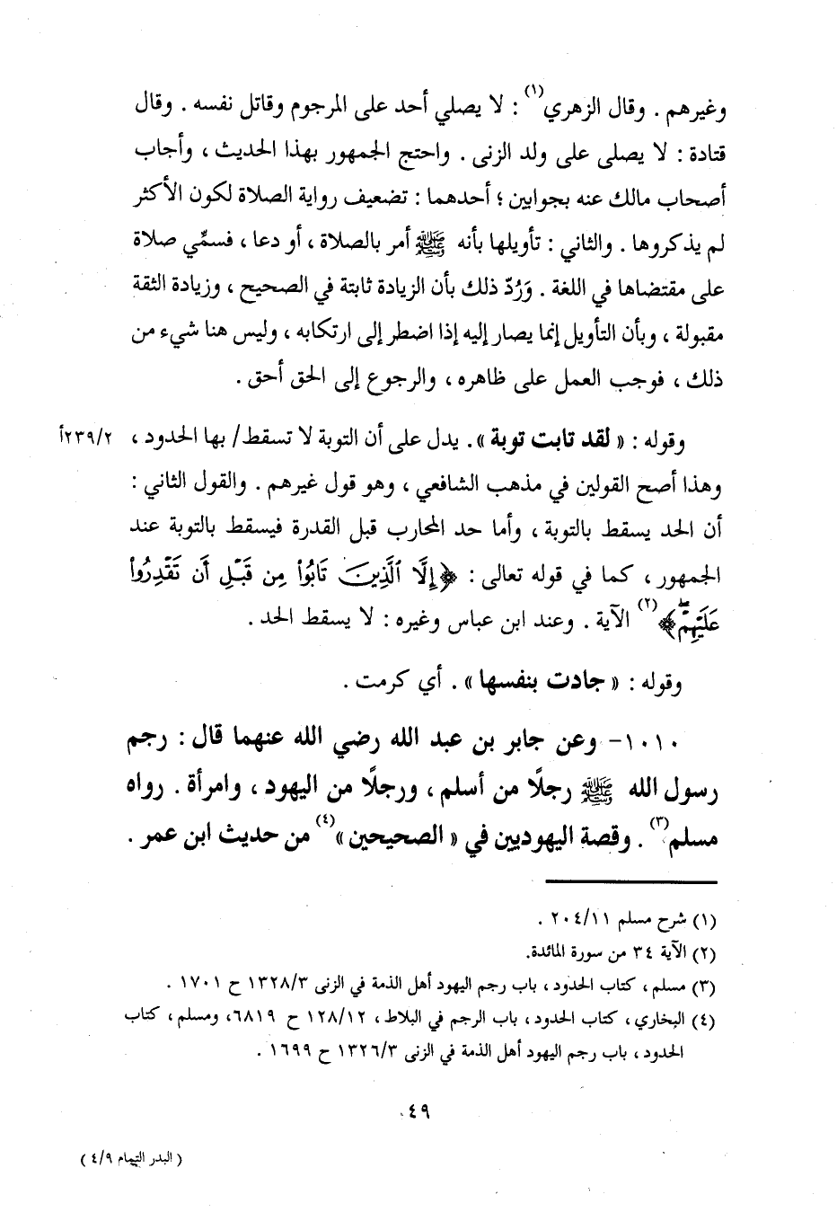 (¬4) البخاري، كتاب الحدود، باب الرجم في البلاط، 12/ 128 ح 6819، ومسلم، كتاب الحدود، باب رجم اليهود أهل الذمة في الزنى 3/ 1326 ح 1699.