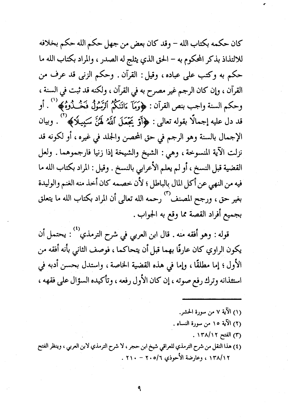 (¬4) هذا النقل من شرح الترمذي للعراقي ابن حجر، لا شرح الترمذي لابن العربي، وينظر الفتح 12/ 138، وعارضة الأحوذي 6/ 205 - 210.