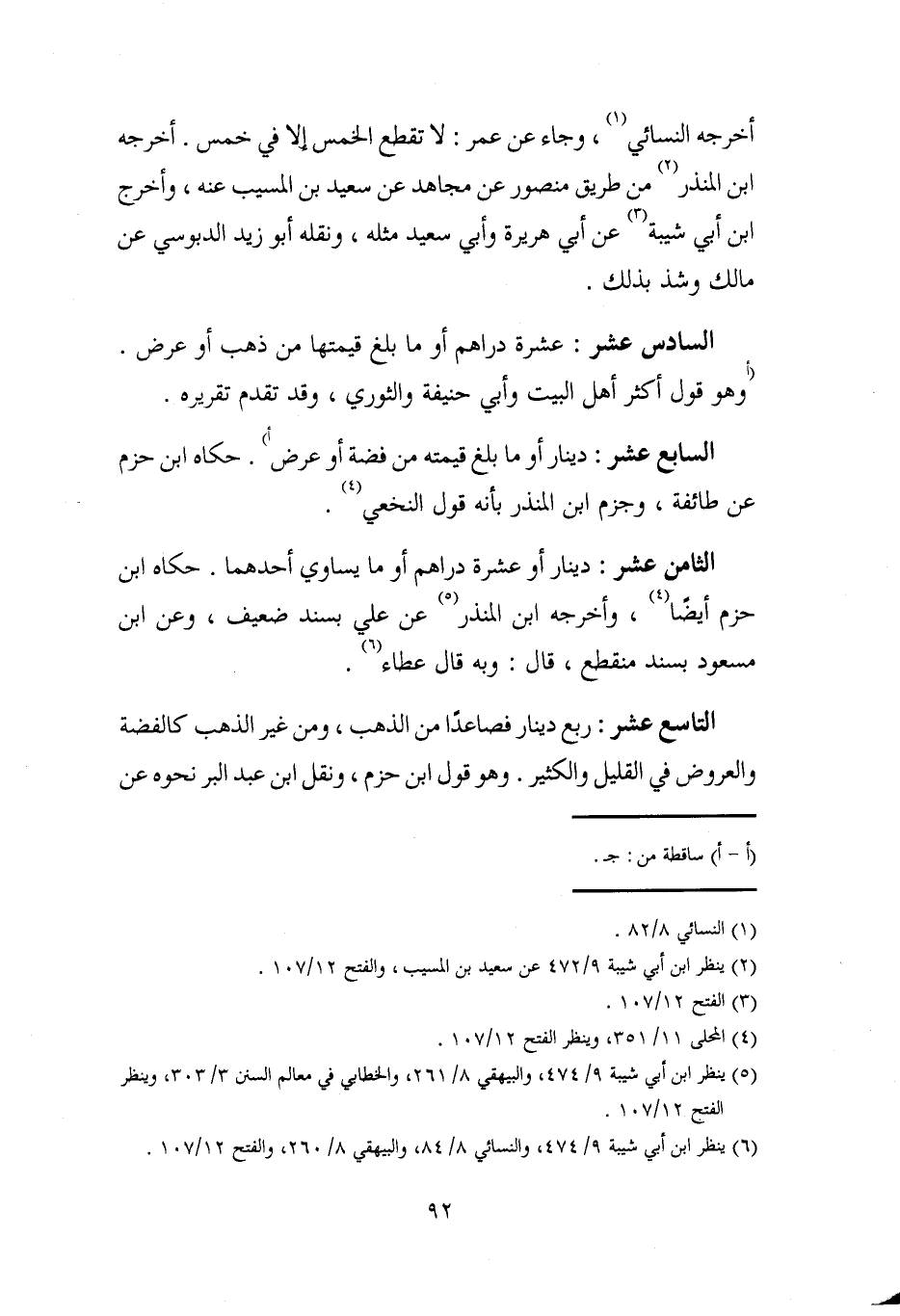 (¬6) ينظر ابن أبي شيبة 9/ 474، والنسائي 8/ 84، والبيهقي 8/ 260، والفتح 12/ 107.