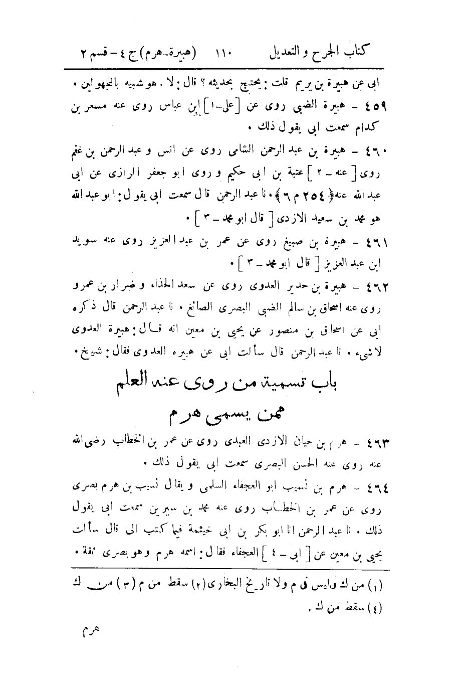 - باب تسمية من رُوي عنه العلم، مِمَّن يُسَمَّى هرم.
