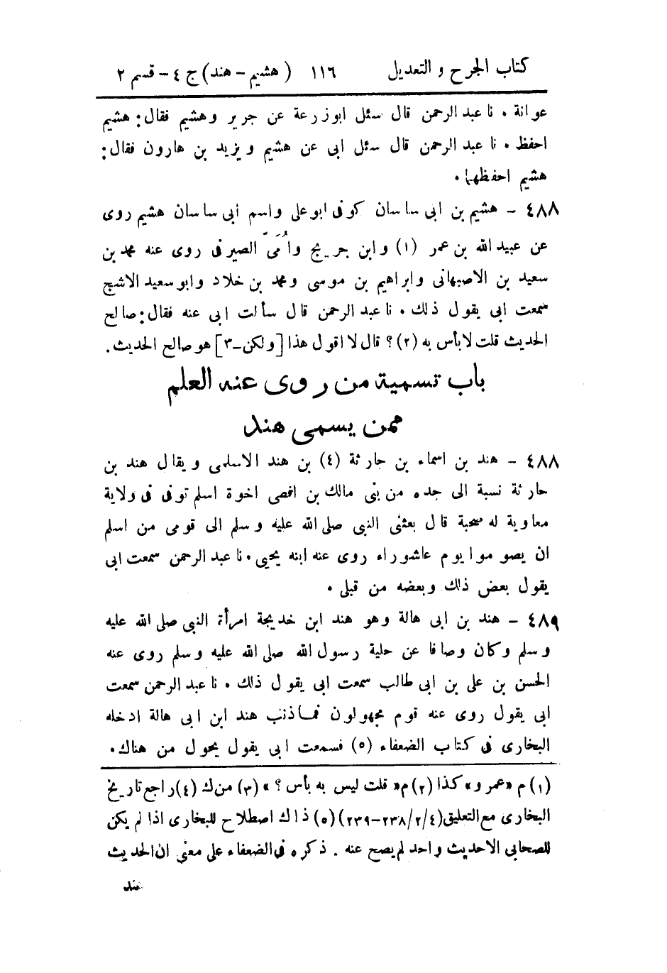 - باب تسمية من رُوي عنه العلم، مِمَّن يُسَمَّى هند.