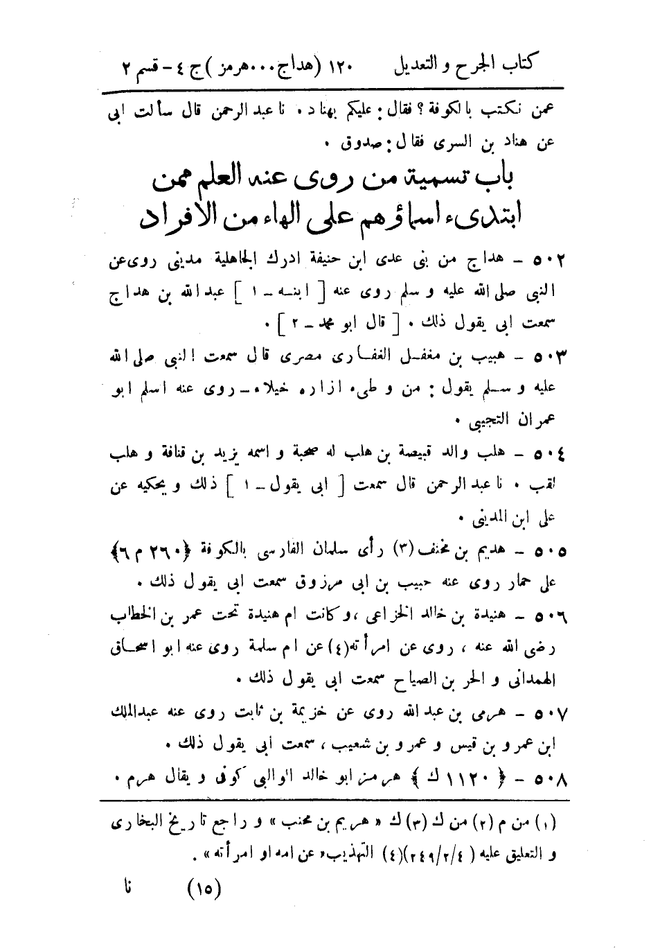 - باب تسمية من رُوي عنه العلم، ممن ابتدئ أسماؤهم على الهاء من الأفراد.