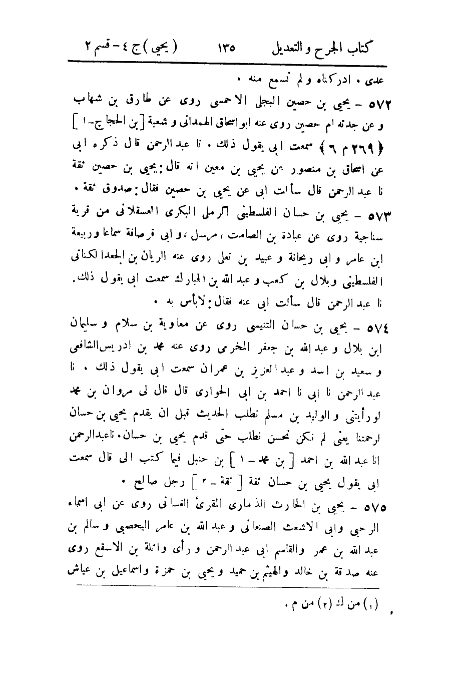 573- يَحيَى بن حسان الفلسطيني الرملي البكري العسقلاني، من قرية سناجية.