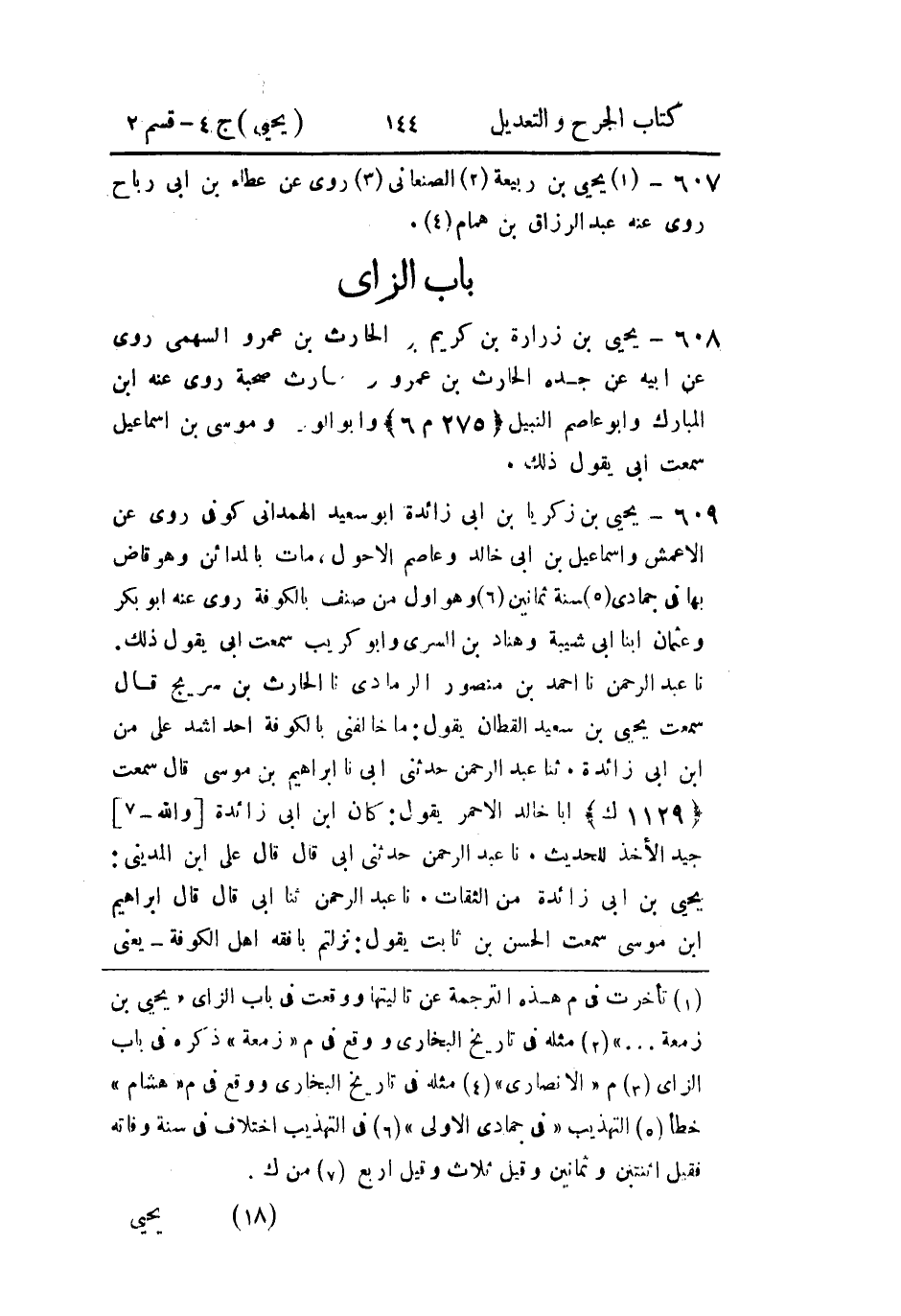 609- يَحيَى بن زكريا بن أَبي زائدة، أَبو سَعيد الهمداني، كُوفيٌّ.
