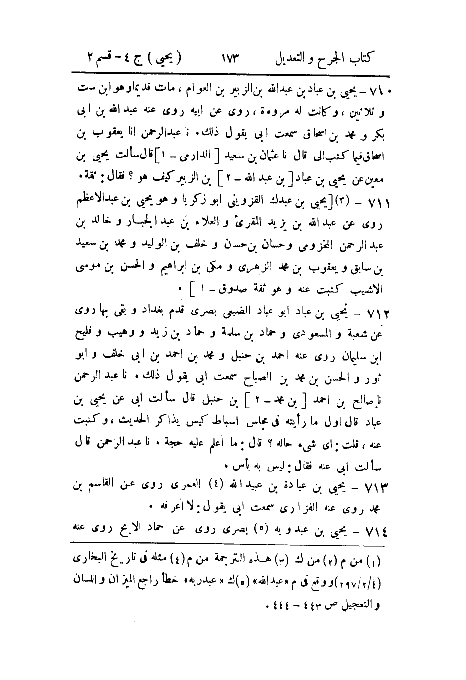 712- يَحيَى بن عباد أَبو عباد الضُّبَعي، بَصريٌّ قدم بغداد وبقي بها.