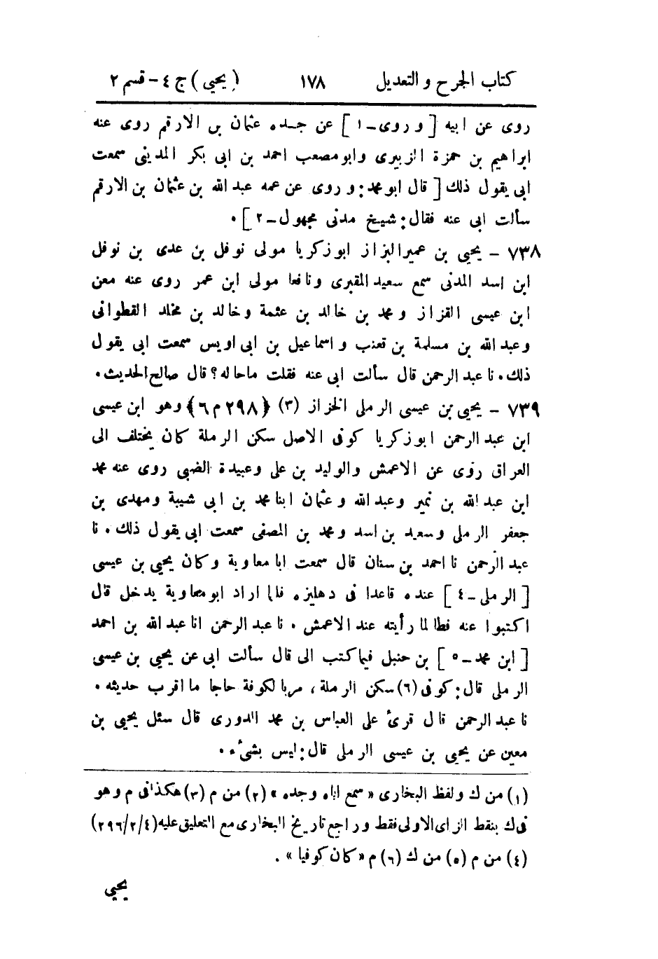 739- يَحيَى بن عيسَى الرملي الخزاز، وهو ابن عيسَى بن عَبد الرَّحمن، أَبو زكريا.