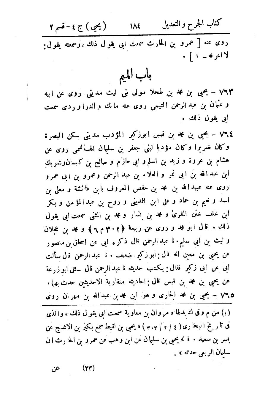 763- يَحيَى بن محمد بن طحلا، مَولى بَني ليث، مَدينيٌّ.