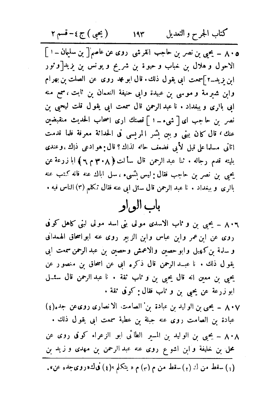 806- يَحيَى بن وثاب الأَسدي، مَولى بَني أسد، مولى لِبَني كاهل، كُوفيٌّ.