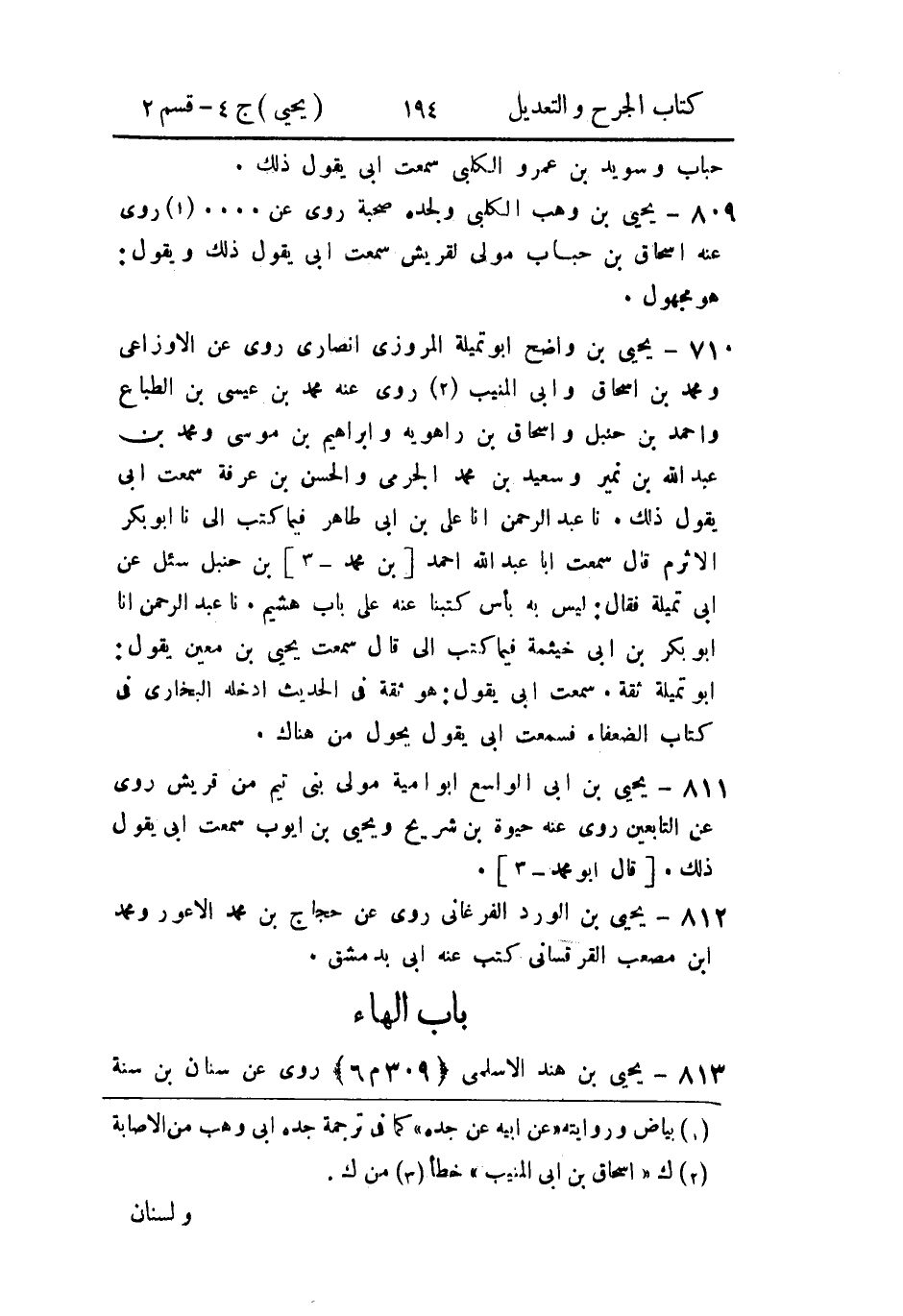 810- يَحيَى بن واضح أَبو تميلة المَرْوَزي أَنصاري.