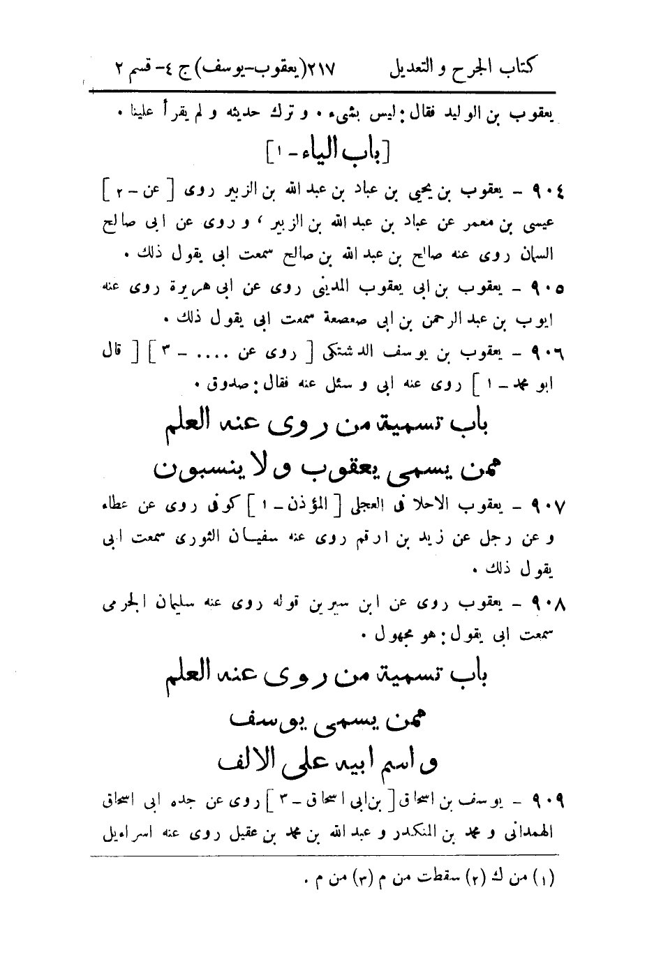 - باب تسمية من رُوي عنه العلم، مِمَّن يُسَمَّى يعقوب ولا ينسبون.