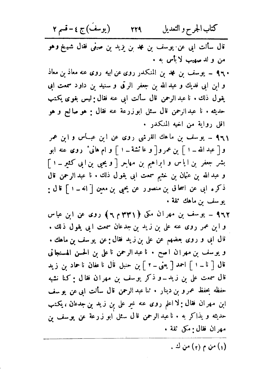 حَدثنا عَبد الرَّحمن، قال: سُئِل أَبو زُرعَة عن يوسف بن مهران، فقال: مَكّيٌّ، ثقة.