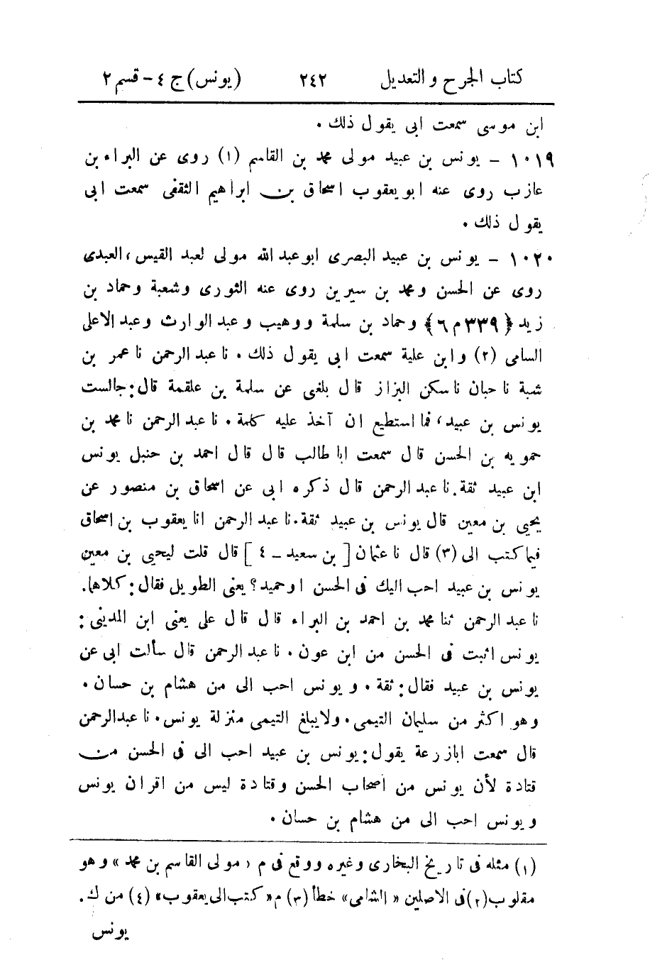 1020- يُونُس بن عُبَيد البَصري، أَبو عَبد الله، مولى لعبد القيس، العَبدي.
