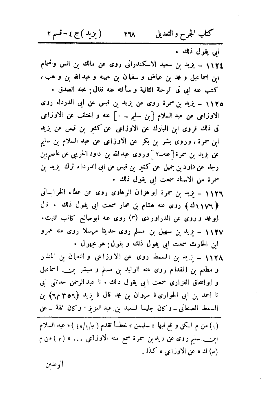 1126- يزيد بن سمرة، أَبو هزان الرهاوي.
