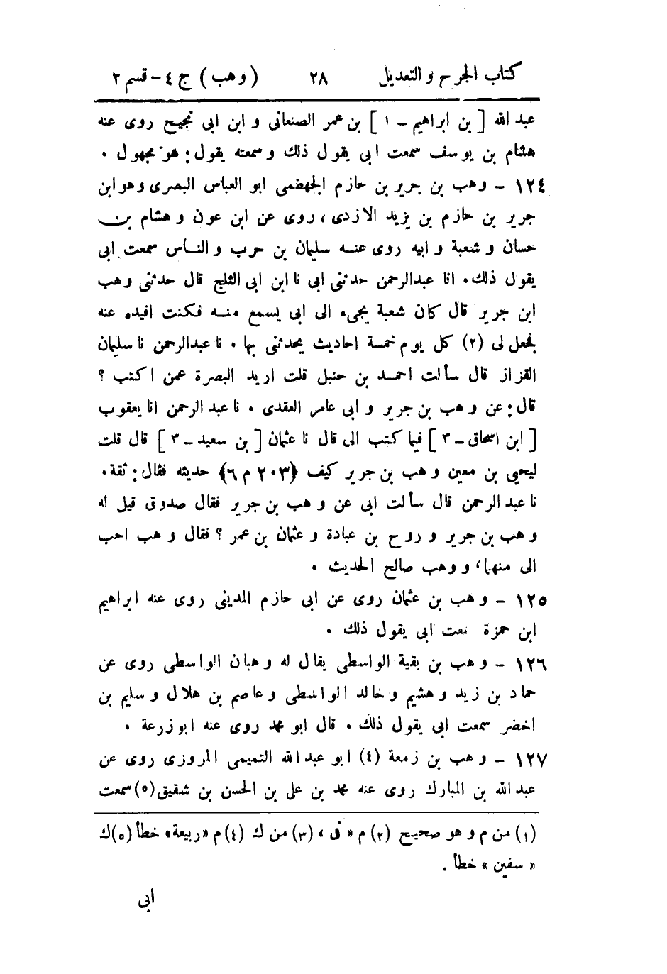 124- وهب بن جرير بن حازم الجهضمي، أَبو العباس البَصري، وهو ابن جرير بن حازم بن يزيد الأزدي.
