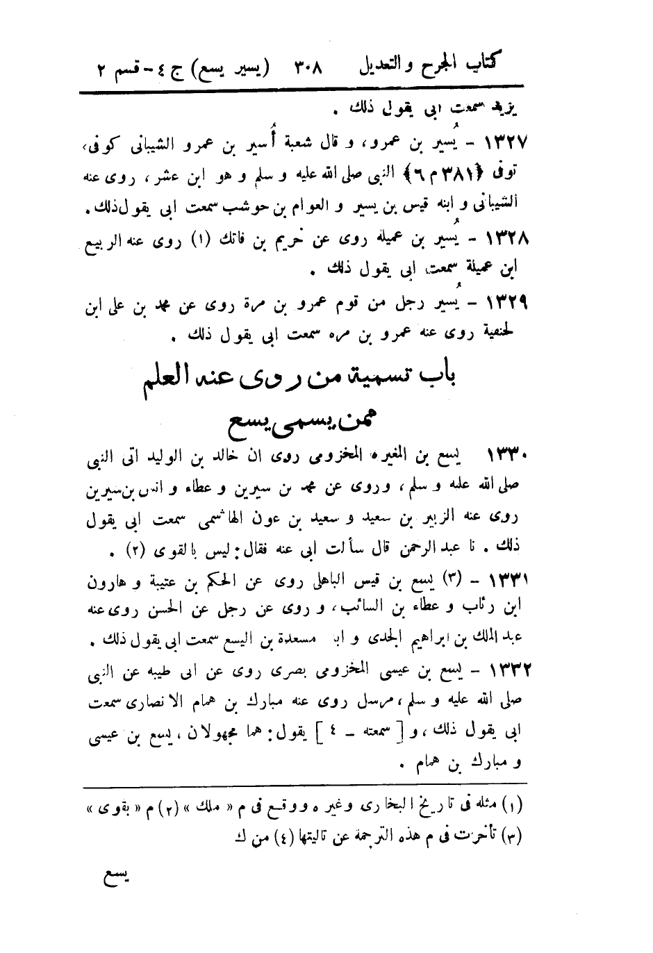 - باب تسمية من رُوي عنه العلم، مِمَّن يُسَمَّى يسع.
