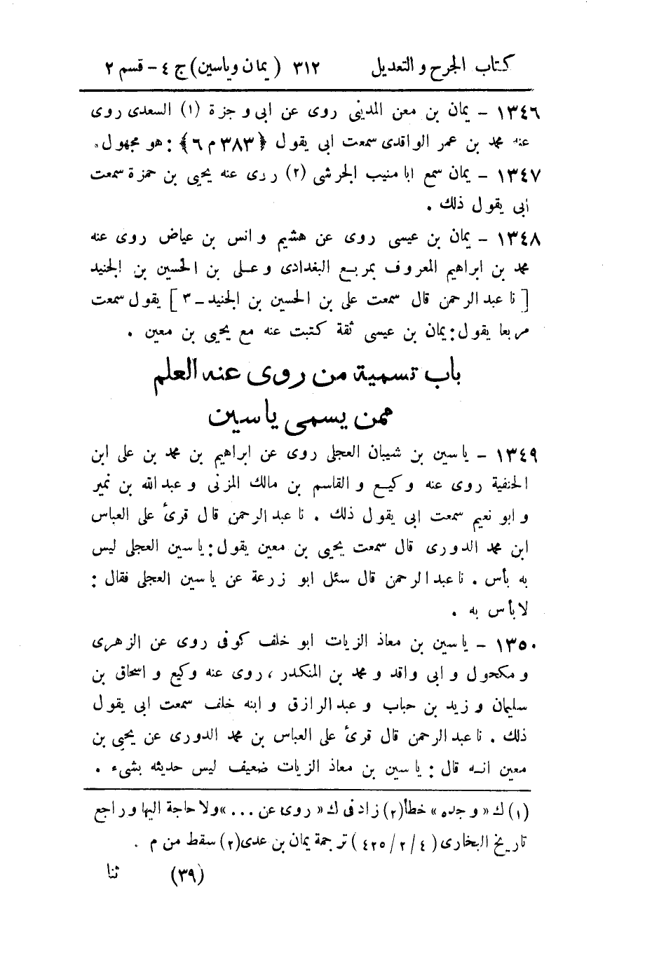 - باب تسمية من رُوي عنه العلم، مِمَّن يُسَمَّى ياسين.