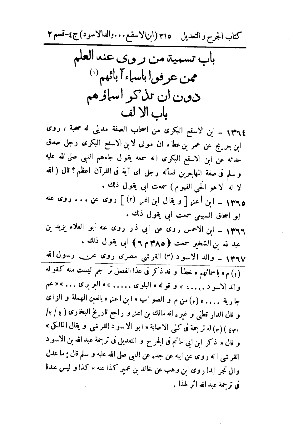 - باب تسمية من رُوي عنه العلم، ممن عرفوا بأسماء آبائهم دون أَن تذكر أسماؤهم.