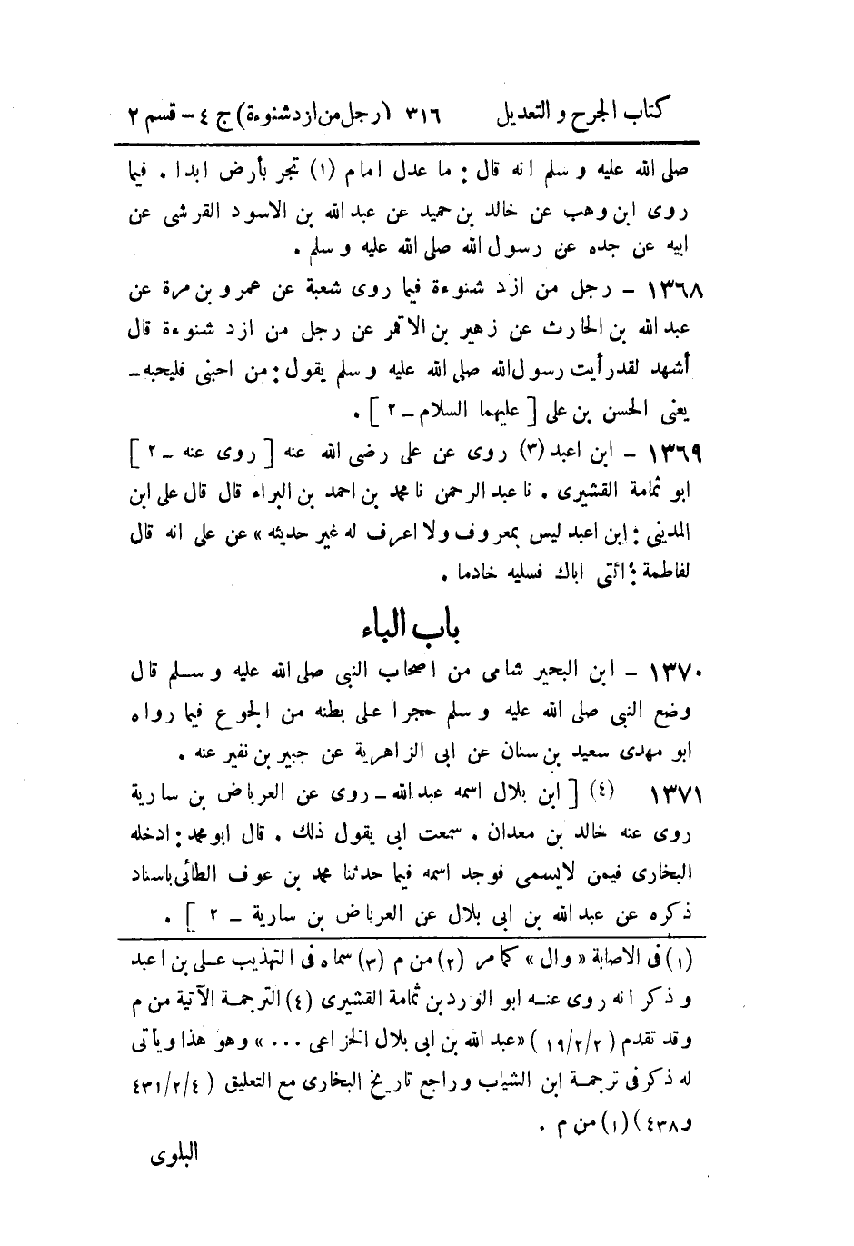 1370- ابن البحير، شامي، من أَصحاب النَّبي صَلى الله عَليه وسَلم.