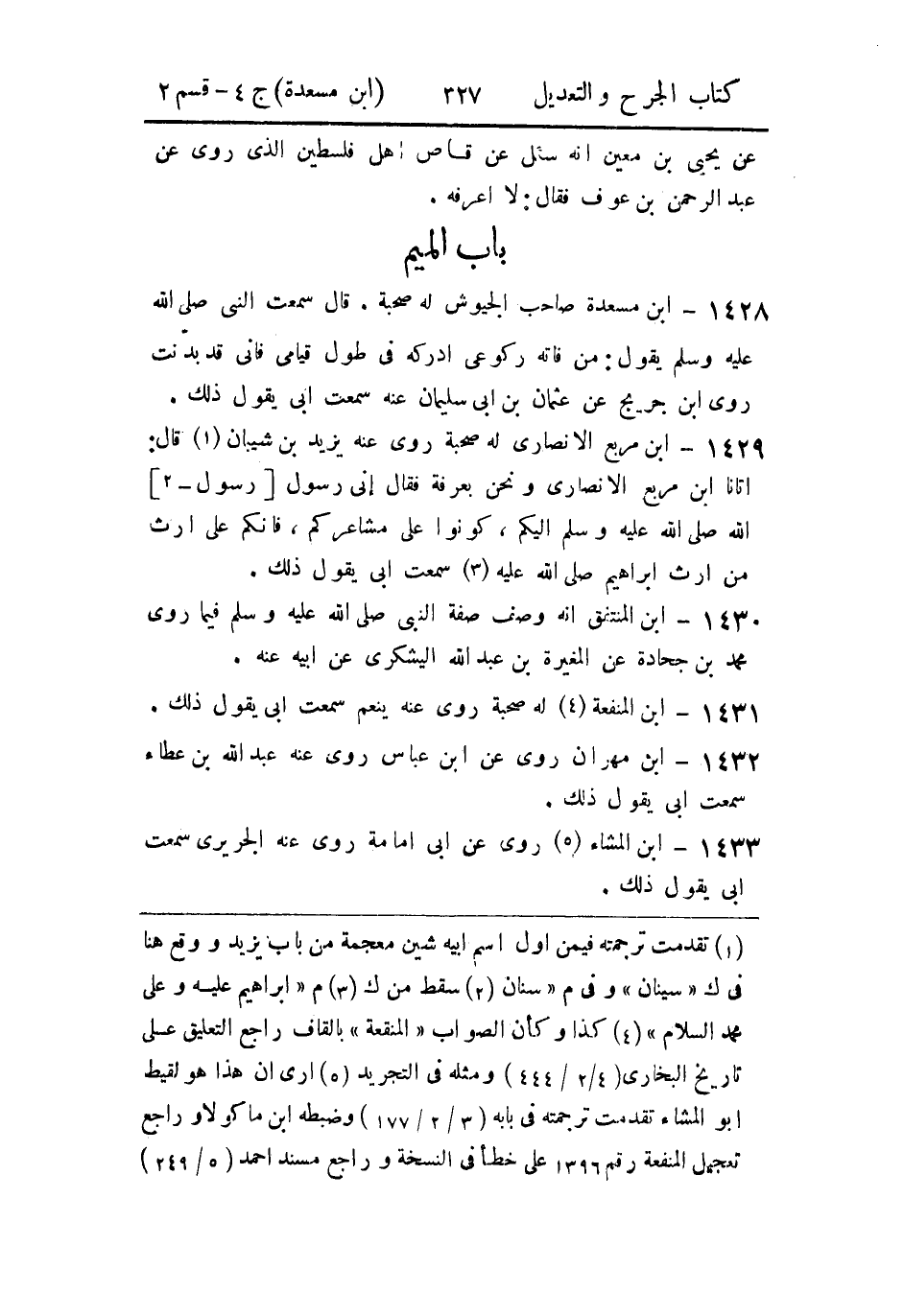 1430- ابن المنتفق؛ أَنه وصف صفة النَّبي صَلى الله عَليه وسَلم.
