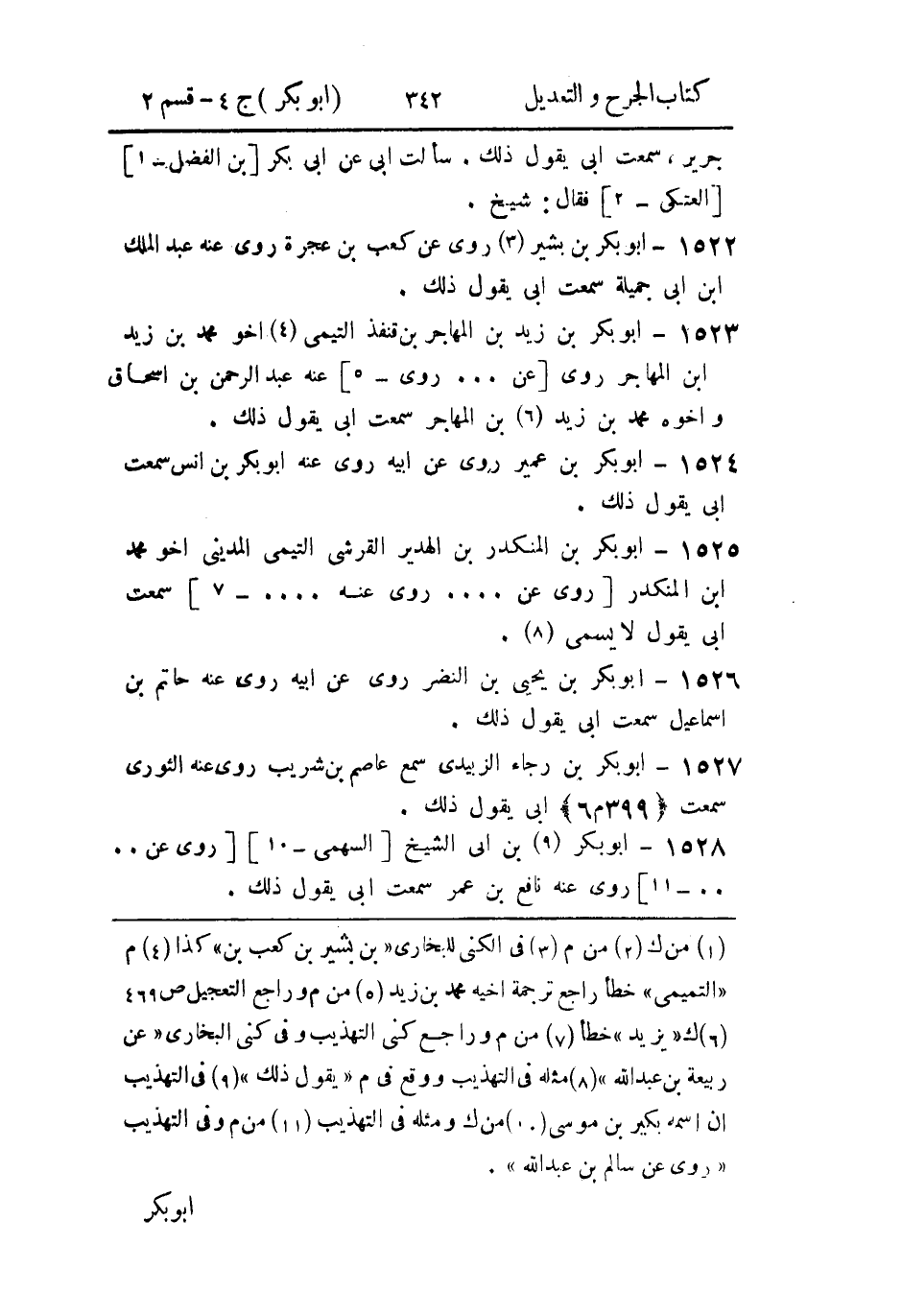 1525- أَبو بكر بن المنكدر بن الهدير القُرَشي، التيمي، المَديني، أَخو مُحمد بن المنكدر.