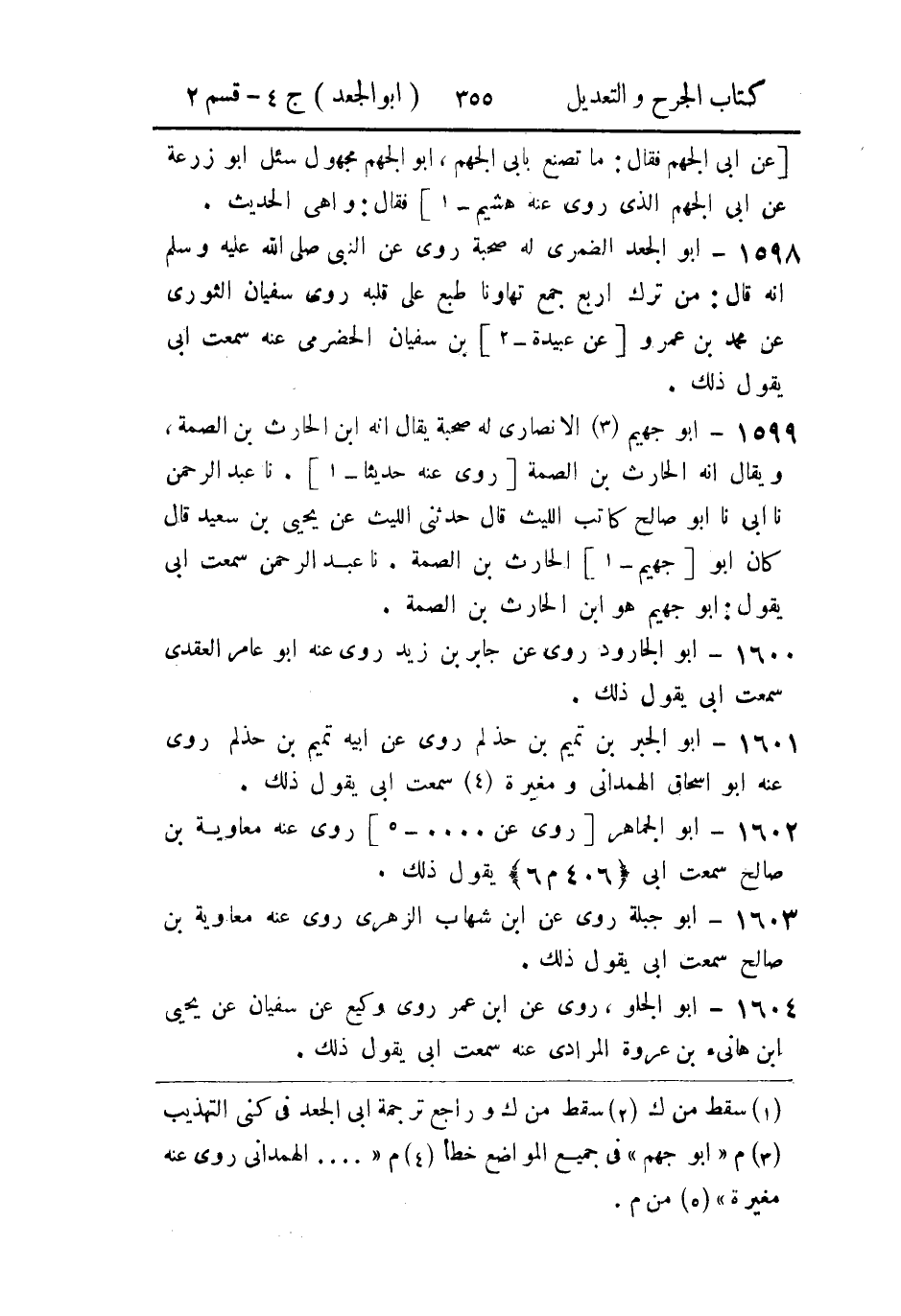 حَدثنا عَبد الرَّحمن، حَدثنا أَبي، حَدثنا أَبو صالح كاتب الليث، قال: حَدَّثني الليث عن يَحيَى بن سعيد، قال: كان أَبو جهيم الحارث بن الصمة.