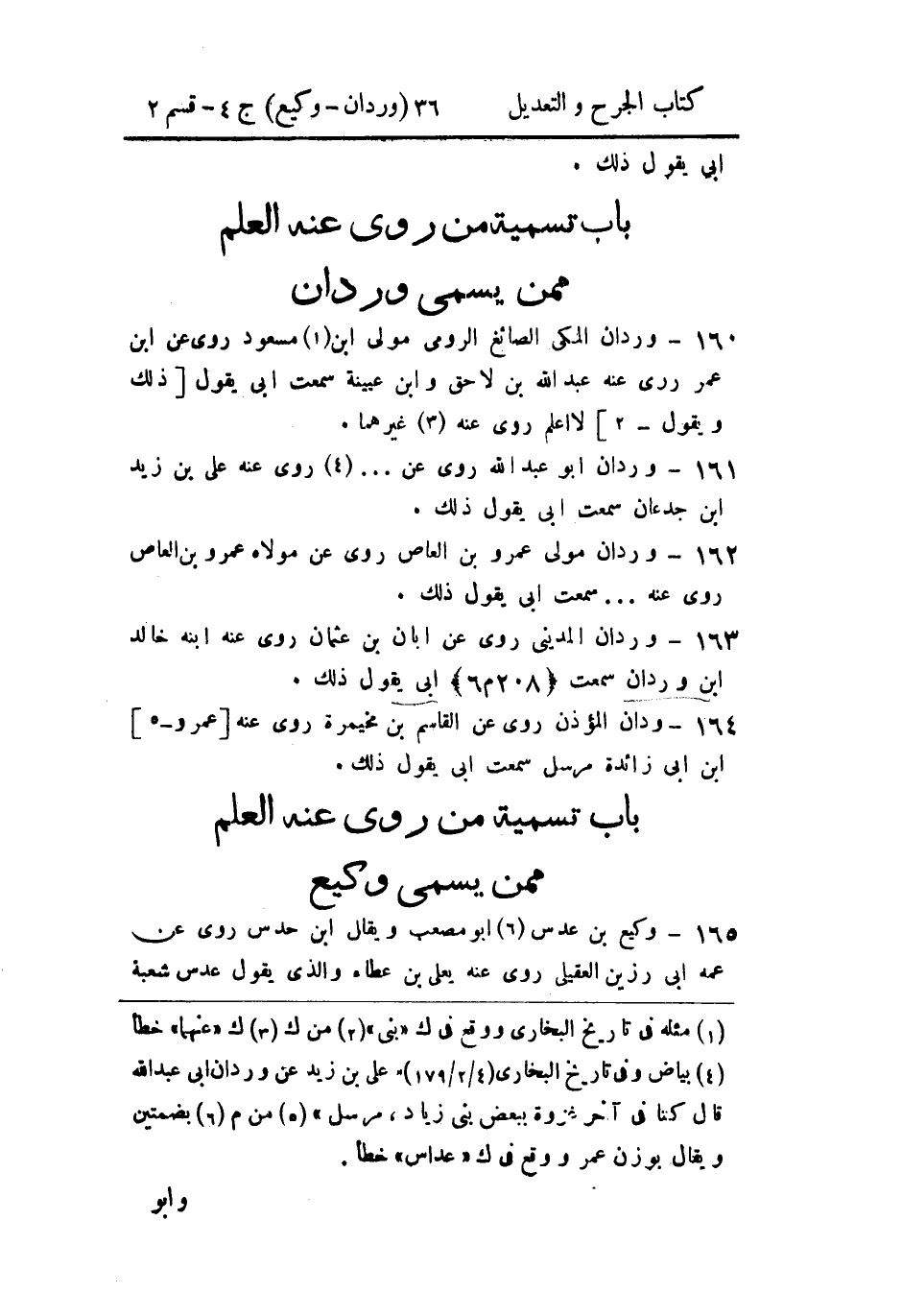 - باب تسمية من رُوي عنه العلم، مِمَّن يُسَمَّى وردان.