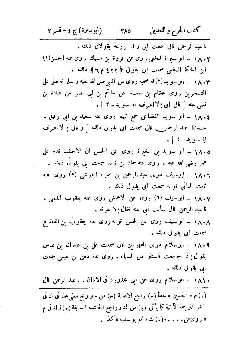 حَدثنا عَبد الرَّحمن، قال: سَمِعتُ أَبي يقول ذلك، وقال: لا أعرف أَبَا سويد.