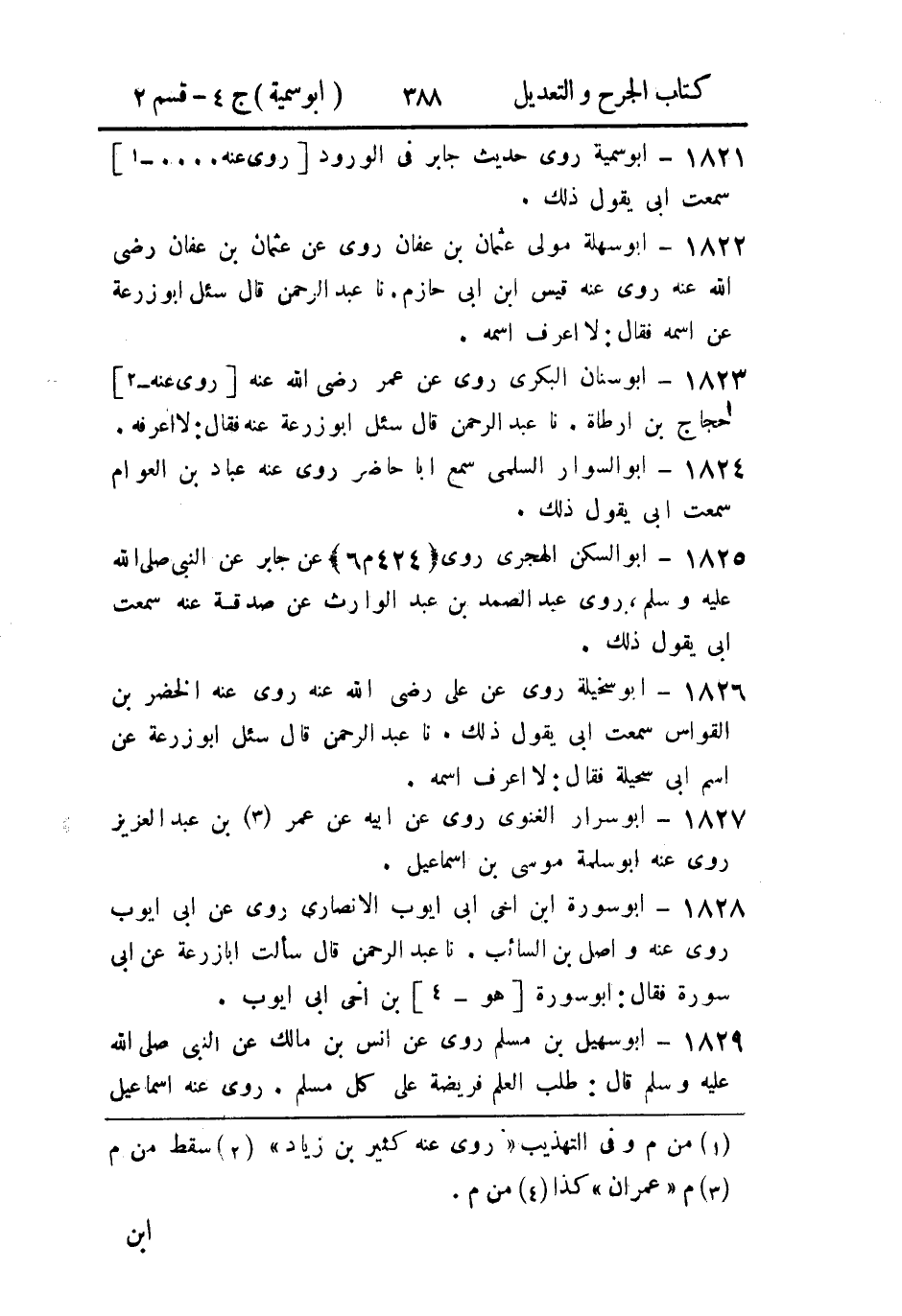 حَدثنا عَبد الرَّحمن، قال: سُئِل أَبو زُرعَة عن اسمه، فقال: لا أعرف اسمه.