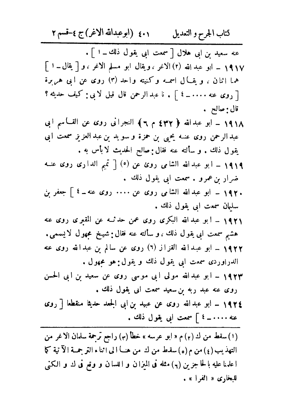 1917- أَبو عَبد الله الأغر، ويُقال: أَبو مسلم الأغر، و يقال هما اثنان، ويُقال: اسمه وكنيته واحد.