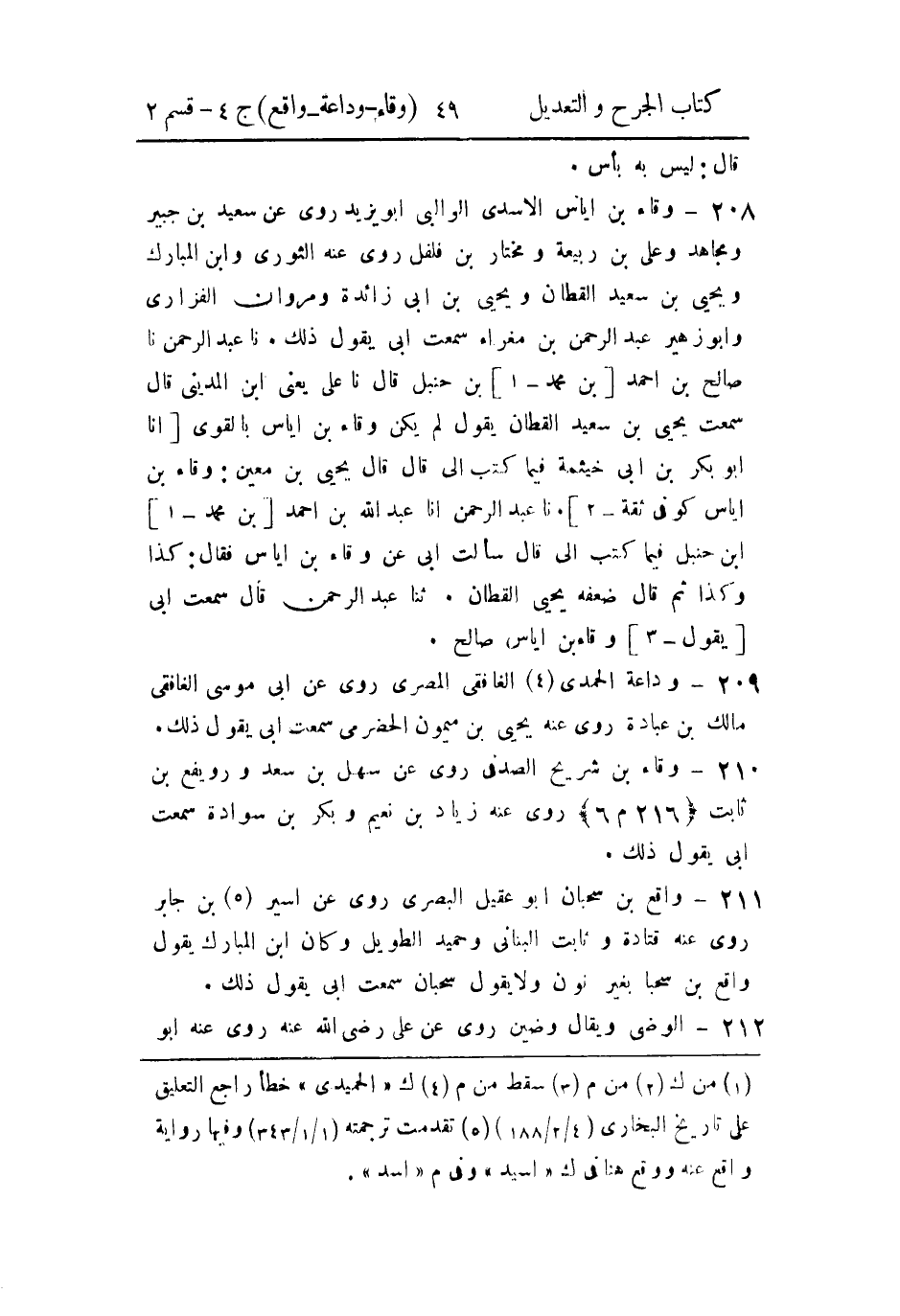 حَدثنا عَبد الرَّحمن، حَدثنا صالح بن أَحمد بن محمد بن حَنبل قال: حَدثنا علي، يَعني ابن المَديني، قال: سَمِعتُ يَحيَى بن سَعيد القطان يقول: لم يكن وقاء بن إياس بالقَوي.