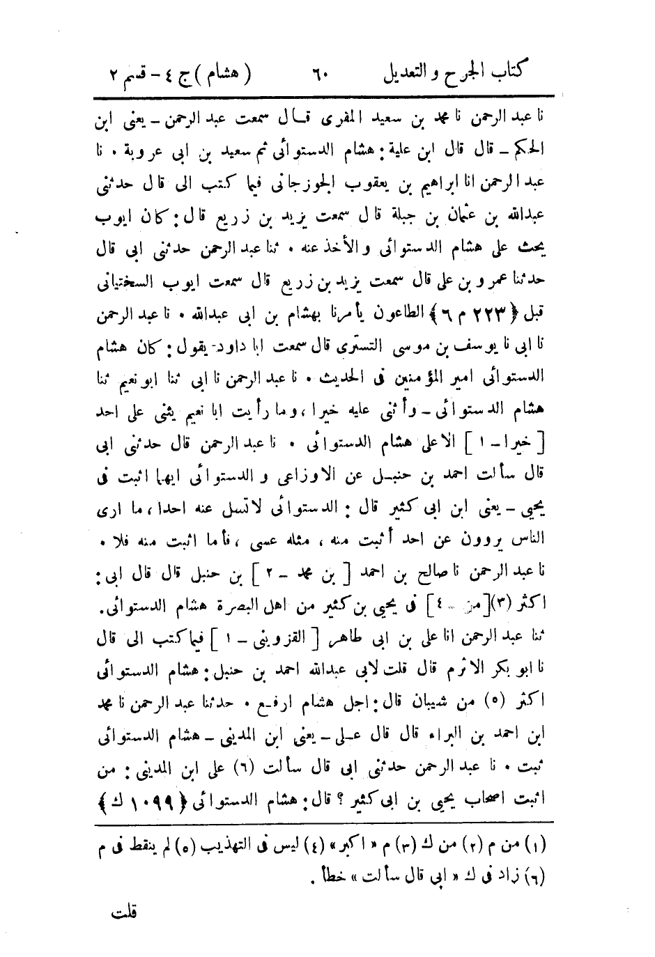 حَدثنا عَبد الرَّحمن، حَدثنا صالح بن أَحمد بن محمد بن حَنبل، قال: قال أَبي: أَكثر مَن في يَحيَى بن أبي كثير (1) من أهل البصرة هشام الدَّسْتُوائي.