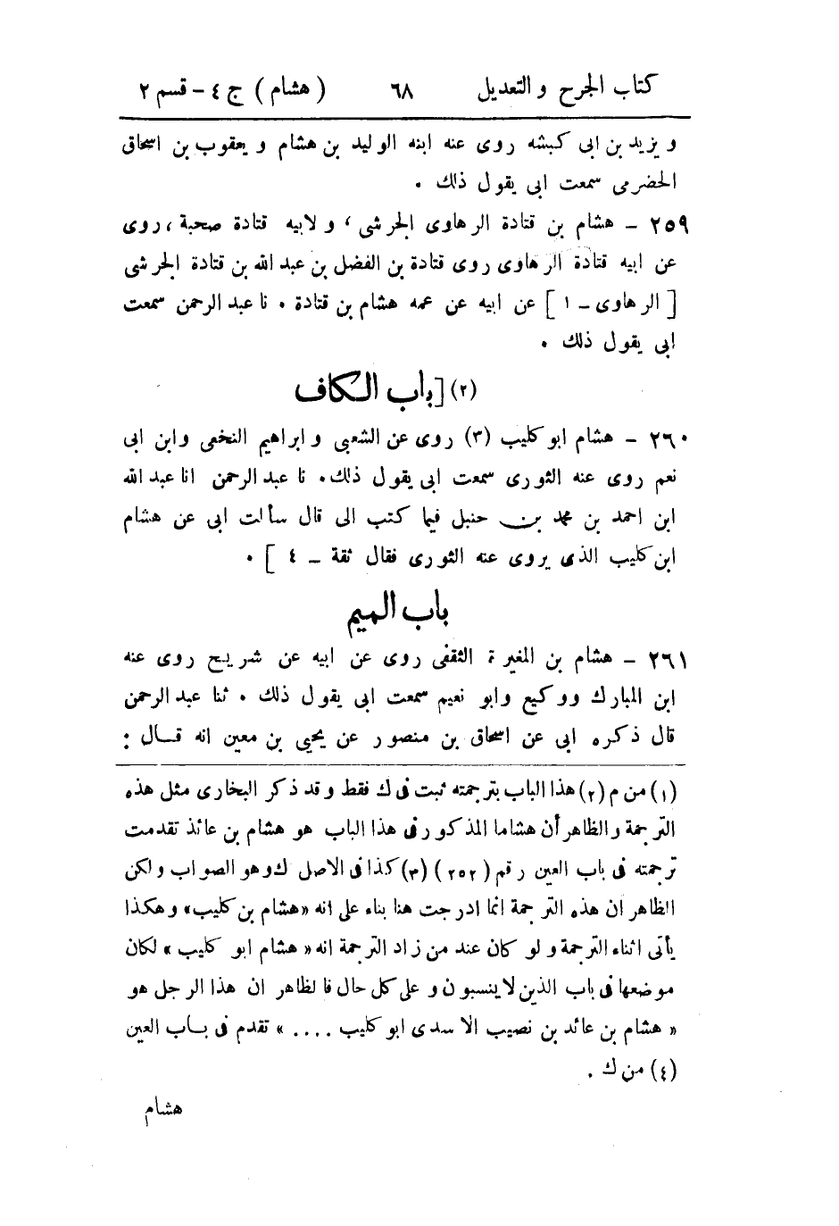 حَدثنا عَبد الرَّحمن، أَخبَرنا عَبد الله بن أَحمد بن محمد بن حَنبل، فيما كَتَبَ إلَيَّ، قال: سَألتُ أَبي عن هشام بن كليب، الذي يروى عنه الثَّوريّ؟ فَقال: ثِقةٌ.