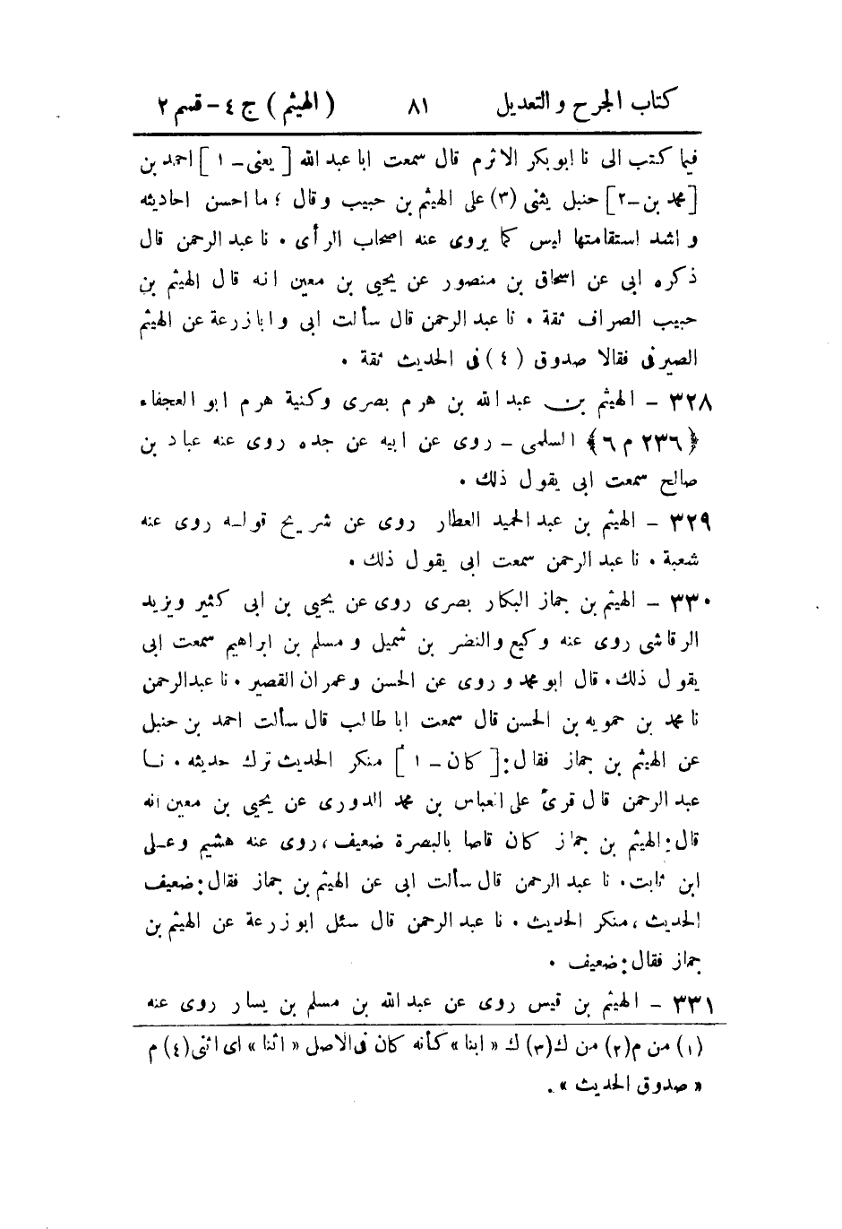 328- الهيثم بن عَبد الله بن هرم، بَصريٌّ، وكنية هرم أَبو العجفاء السلمي.