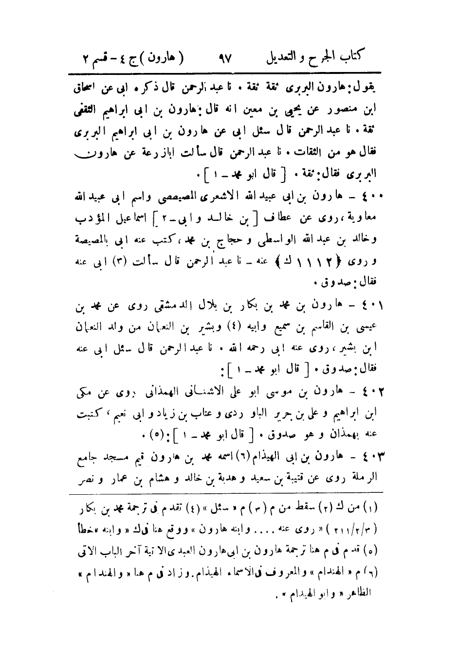 400- هارون بن أَبي عُبَيد الله الأَشعري المصيصي، واسم أبي عُبَيد الله معاوية.
