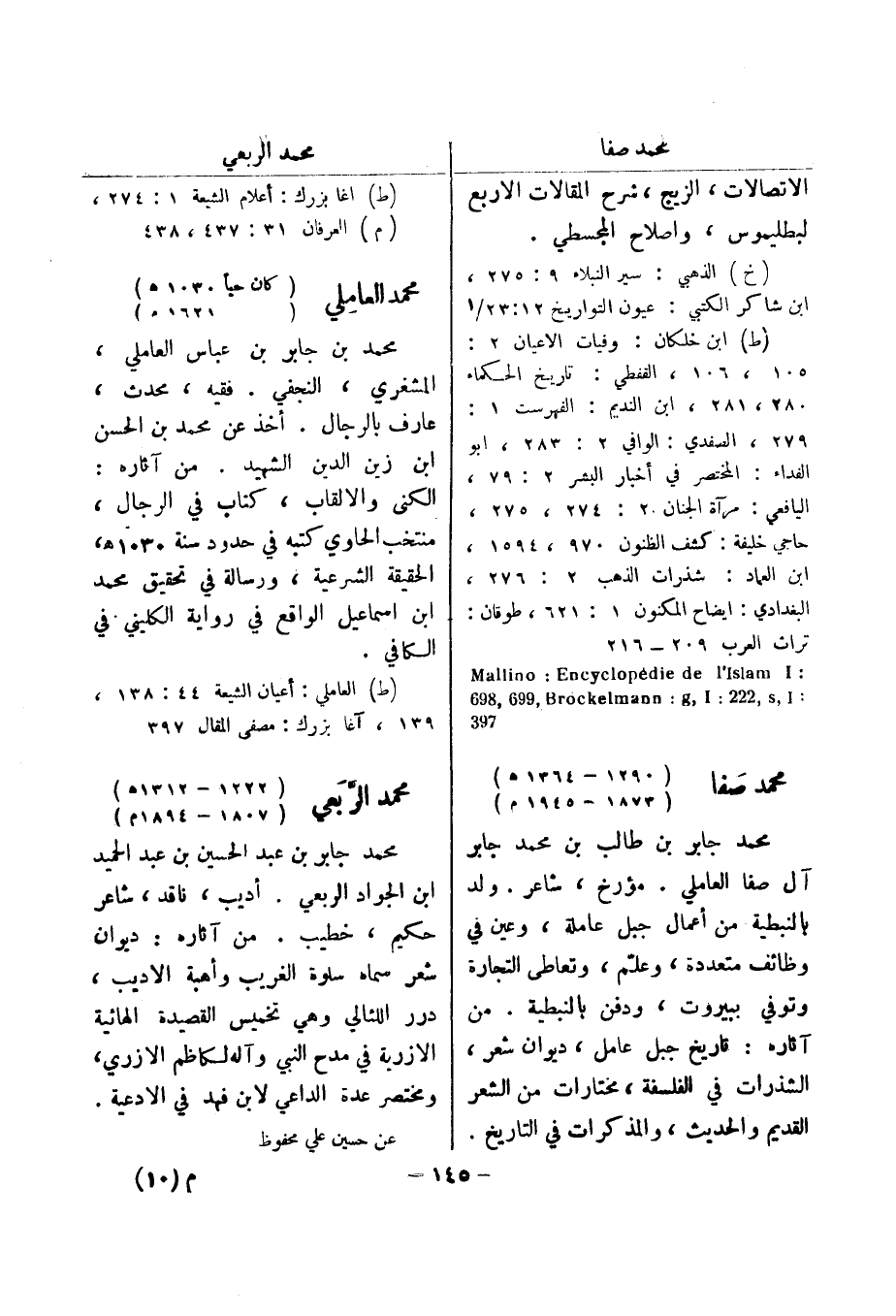 (ط) اغا برزك: أعلام الشيعة 1: 274، (م) العرفان 31: 437، 438 محمد العاملي (كان حيا 1030 هـ) (1621 م) محمد بن جابر بن عباس العاملي، المشغري، النجفي.