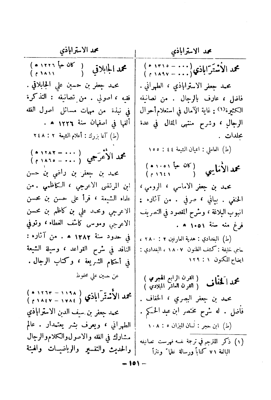 (ط) العاملي: اعيان الشيعة 44: 155 محمد الاماسي (كان حيا 1051 هـ) (1641 م) محمد بن جعفر الاماسي، الرومي، الحنفي.