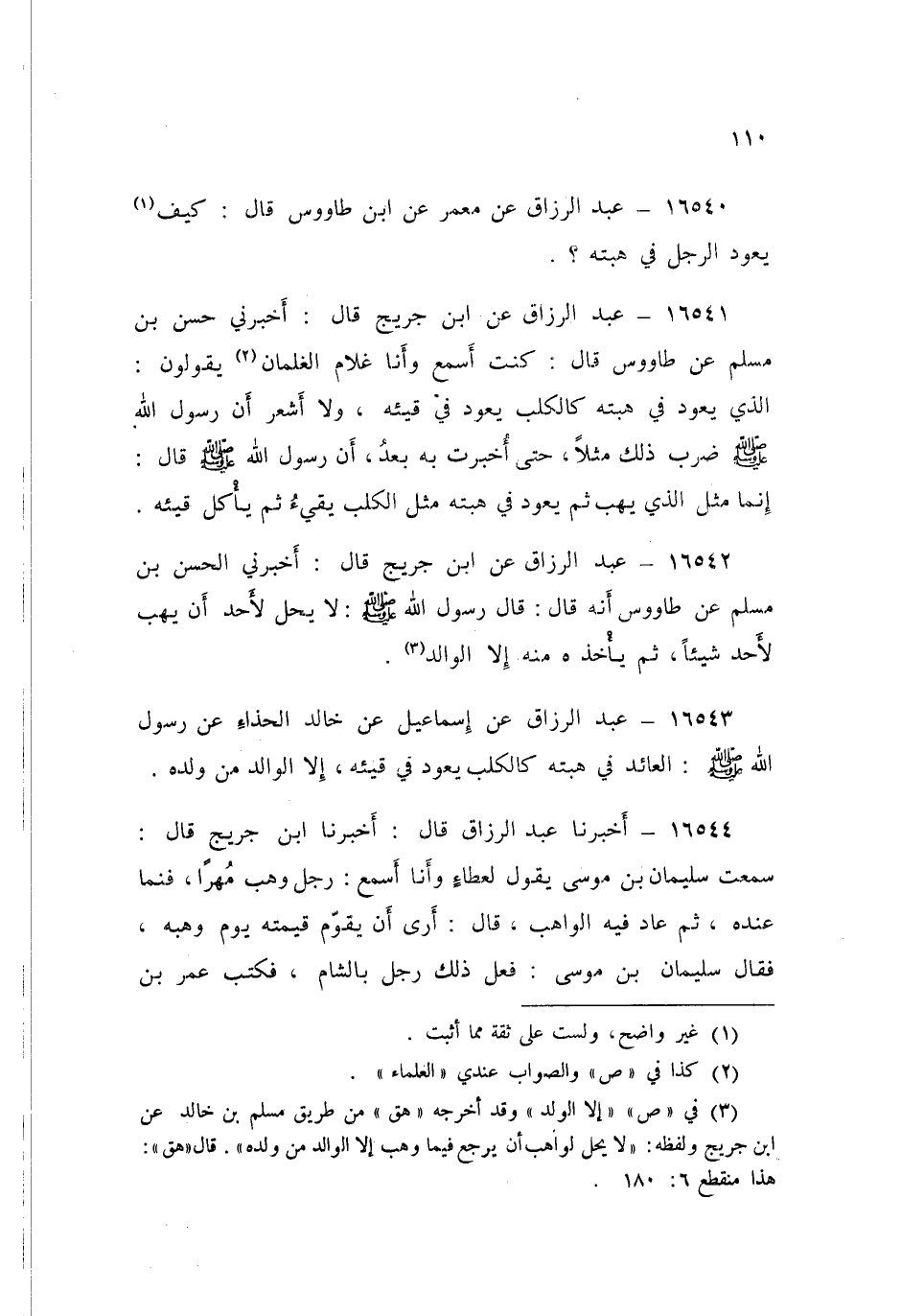 ١٦٥٤٢ - عَنِ ابْنِ جُرَيْجٍ قَالَ: أَخْبَرَنِي الْحَسَنُ بْنُ مُسْلِمٍ، عَنْ طَاوُسٍ أَنَّهُ قَالَ: قَالَ رَسُولُ اللَّهِ صَلَّى اللهُ عَلَيْهِ وَسَلَّمَ: «لَا يَحِلُّ لِأَحَدٍ أَنْ يَهِبَ لِأَحَدٍ شَيْئًا ثُمَّ يَأْخُذَهُ مِنْهُ إِلَّا الْوَالِدَ»