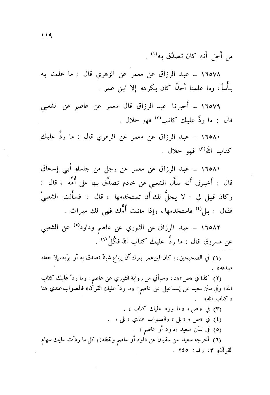 ١٦٥٧٩ - عَبْدُ الرَّزَّاقِ قَالَ مَعْمَرٌ عَنْ عَاصِمٍ، عَنِ الشَّعْبِي قَالَ: «مَا رَدَّ عَلَيْكَ كَاتِبٌ فَهُوَ حَلَالٌ»