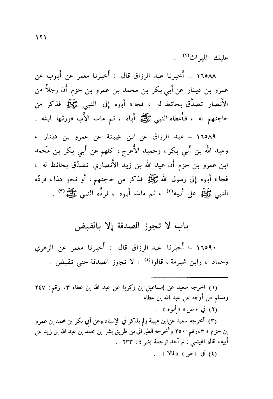 كتاب مصنف عبد الرزاق - ت الأعظمي (اسم الجزء: 9)