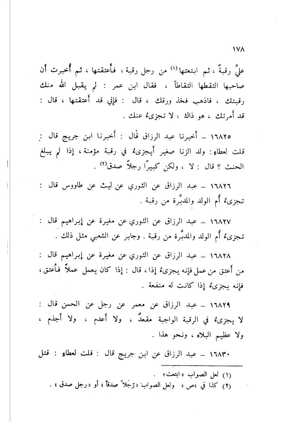 ١٦٨٣٠ - عَنِ ابْنِ جُرَيْجٍ قَالَ: قُلْتُ لِعَطَاءٍ: قَتْلُ النَّفْسِ خَطَأً قَالَ: «لَا يَجُوزُ إِلَّا رَقَبَةً مُؤْمِنَةً كَمَا قَالَ اللَّهُ عَزَّ وَجَلَّ» قَالَ عَطَاءٌ: " إِنْ قَالَ رَجُلٌ لِغُلَامِهِ هُوَ حُرٌّ فَلَا يَكُونُ حُرًّا حَتَّى يَقُولُ: لِلَّهِ لَعَلَّهُ لَمْ يُرِدِ الْعَتَاقَةَ "