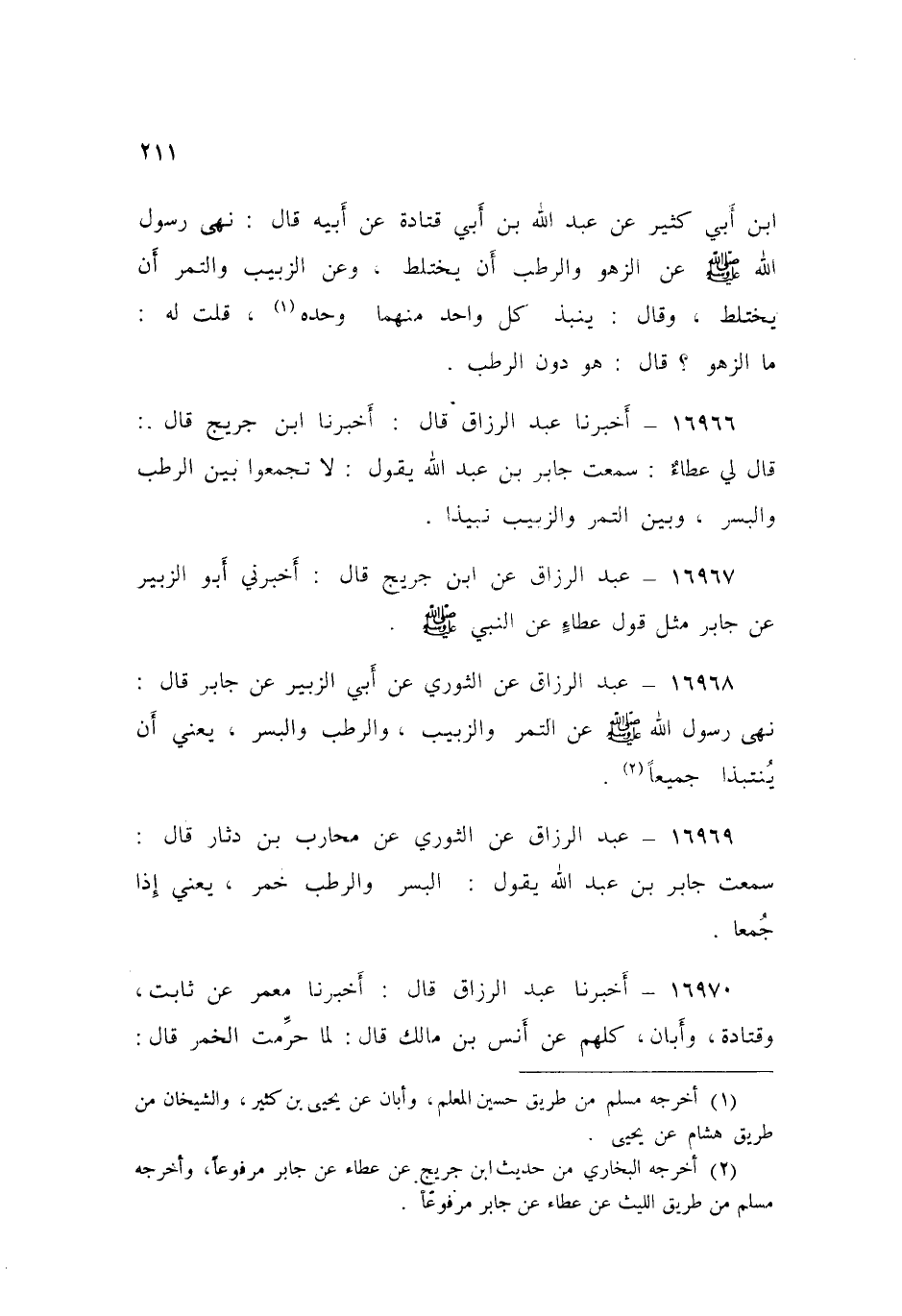 ١٦٩٦٨ - عَنِ الثَّوْرِيِّ، عَنْ أَبِي الزُّبَيْرِ، عَنْ جَابِرٍ قَالَ: «نَهَى رَسُولُ اللَّهِ صَلَّى اللهُ عَلَيْهِ وَسَلَّمَ عَنِ التَّمْرِ، وَالزَّبِيبِ وَالرُّطَبِ، وَالْبُسْرِ - يَعْنِي أَنْ يَنْتَبِذَا جَمِيعًا -»