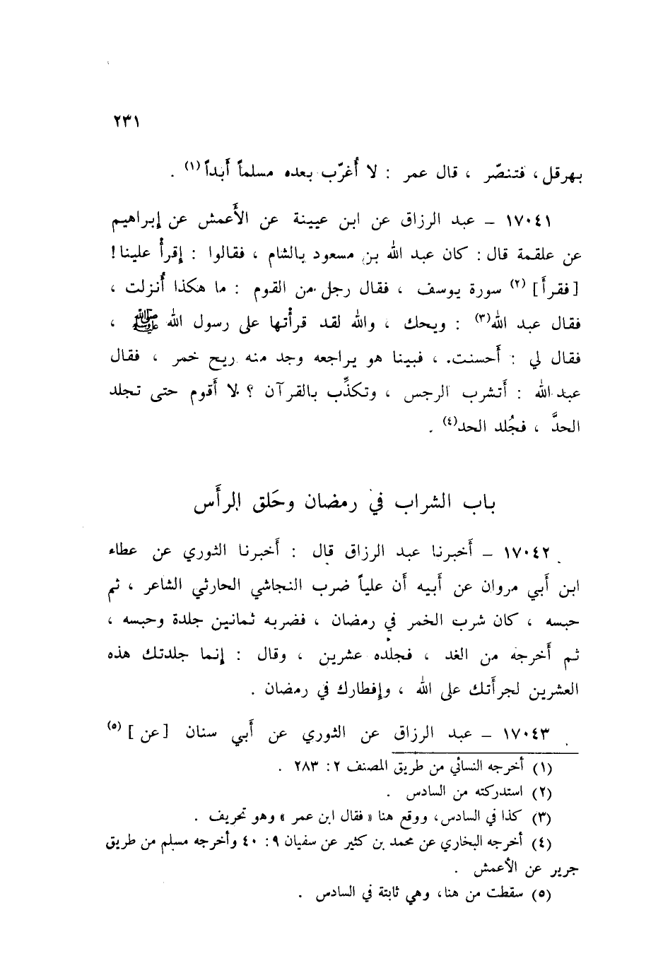 ١٧٠٤٢ - عَبْدُ الرَّزَّاقِ قَالَ: أَخْبَرَنَا الثَّوْرِيُّ، عَنْ عَطَاءِ بْنِ أَبِي مَرْوَانَ، عَنْ أَبِيهِ، أَنَّ عَلِيًّا ضَرَبَ النَّجَاشِيَّ الْحَارِثِيَّ الشَّاعِرَ ثُمَّ حَبَسَهُ، كَانَ شَرِبَ الْخَمْرَ فِي رَمَضَانَ فَضَرَبَهُ ثَمَانِينَ جَلْدَةً وَحَبَسَهُ، ثُمَّ أَخْرَجَهُ مِنَ الْغَدِ فَجَلَدَهُ عِشْرِينَ، وَقَالَ: «إِنَّمَا جَلَدْتُكَ هَذِهِ الْعِشْرَينَ لِجُرْأَتِكَ عَلَى اللَّهِ، وَإِفْطَارِكَ فِي رَمَضَانَ»