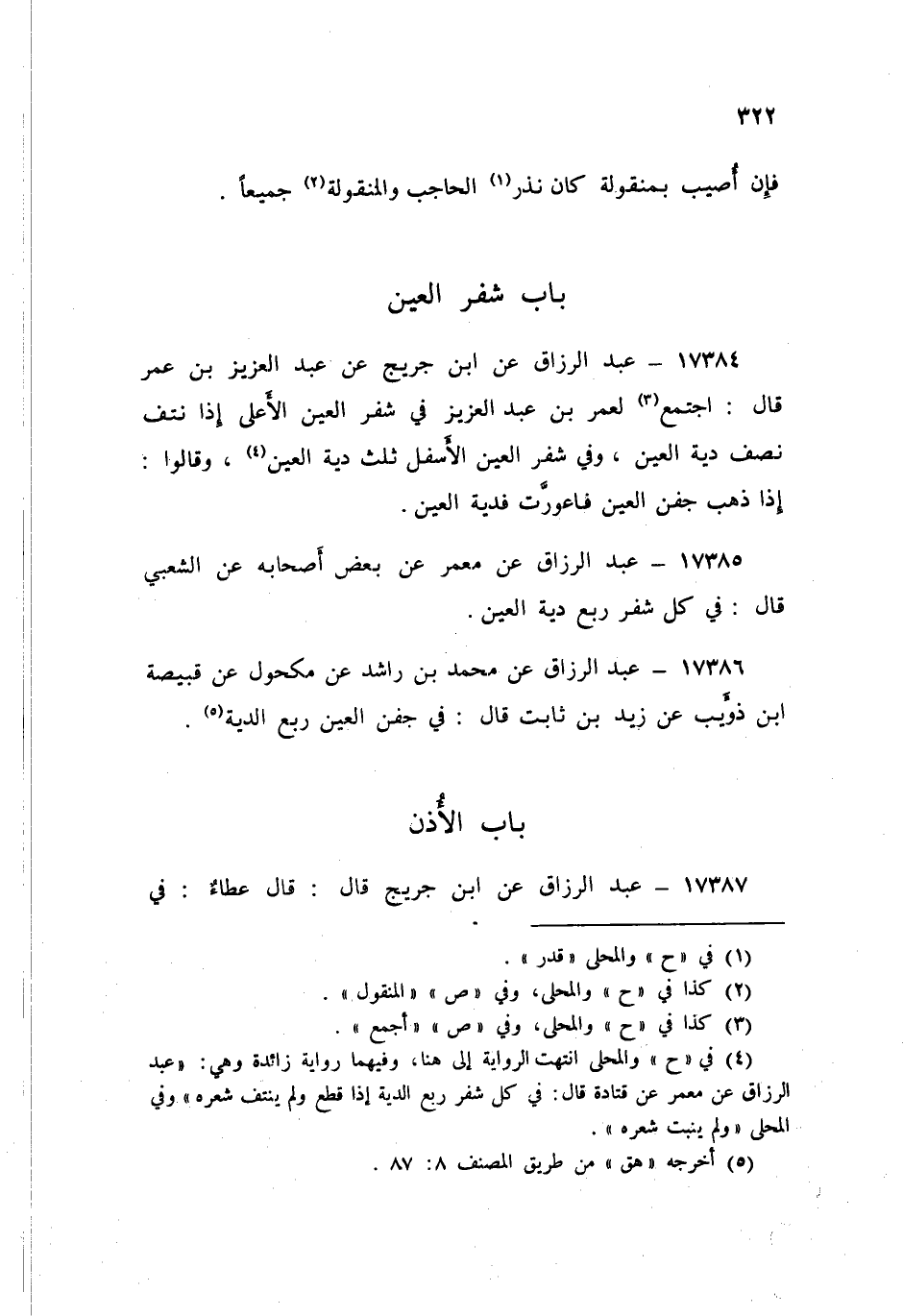 ١٧٣٨٧ - عَنِ ابْنِ جُرَيْجٍ قَالَ: قَالَ عَطَاءٌ: «فِي الْأُذِنِ إِذَا اسْتُؤْصِلَتْ خَمْسُونَ مِنَ الْإِبِلِ»، عَبْدُ الرَّزَّاقِ،