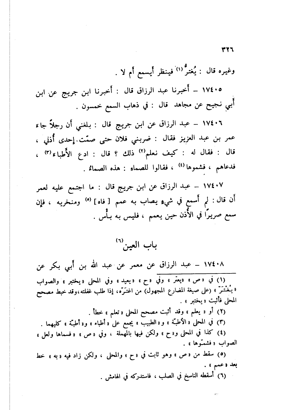 ١٧٤٠٦ - عَنِ ابْنِ جُرَيْجٍ قَالَ: بَلَغَنِي أَنَّ رَجُلًا جَاءَ عُمَرَ بْنَ عَبْدِ الْعَزِيزِ فَقَالَ: ضَرَبَنِي فُلَانٌ حَتَّى صَمَّتْ إِحْدَى أُذُنَيَّ قَالَ: فَقَالَ لَهُ: «كَيْفَ نَعْلَمُ ذَلِكَ؟» قَالَ: ادْعُ الْأَطِبَّاءَ «فَدَعَاهُمْ فَشَمُّوهَا» فَقَالُوا لِلصَّمَّاءِ: هَذِهِ الصَّمَّاءُ "