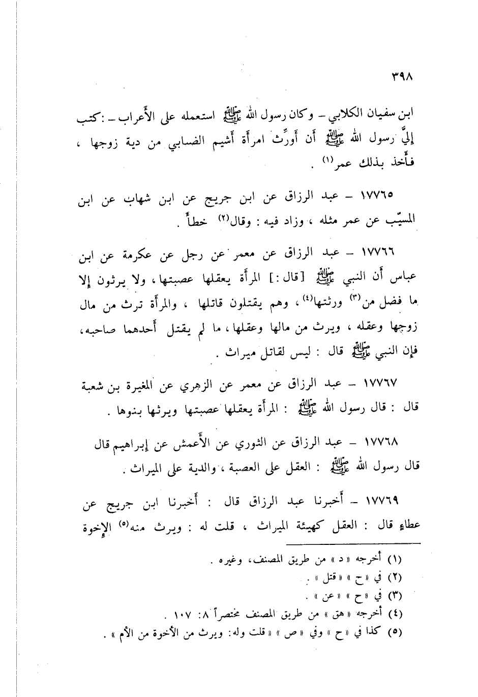 ١٧٧٦٩ - عَبْدُ الرَّزَّاقِ قَالَ: أَخْبَرَنَا ابْنُ جُرَيْجٍ، عَنْ عَطَاءٍ قَالَ: «الْعَقْلُ كَهَيْئَةِ الْمِيرَاثِ» قُلْتُ لَهُ: وَيَرِثُ مِنْهُ الْإِخْوَةُ مِنَ الْأُمِّ؟ قَالَ: «نَعَمْ»