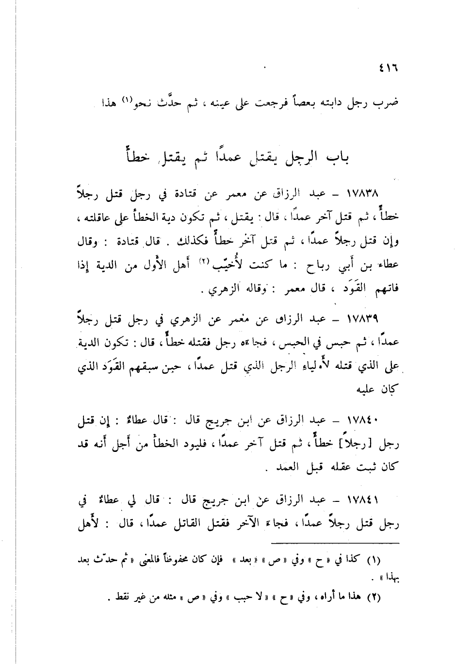 ١٧٨٣٩ - عَنْ مَعْمَرٍ، عَنِ الزُّهْرِيِّ فِي رَجُلٍ قَتَلَ رَجُلًا عَمْدًا، ثُمَّ حُبِسَ فِي الْحَبْسِ، فَجَاءَهُ رَجُلٌ فَقَتَلَهُ خَطَأً قَالَ: «تَكُونُ الدِّيَةُ عَلَى الَّذِي قَتَلَهُ لِأَوْلِيَاءِ الرَّجُلِ، الَّذِي قَتَلَ عَمْدًا حِينَ سَبَقَهُمُ الْقَوَدُ الَّذِي كَانَ عَلَيْهِ»
